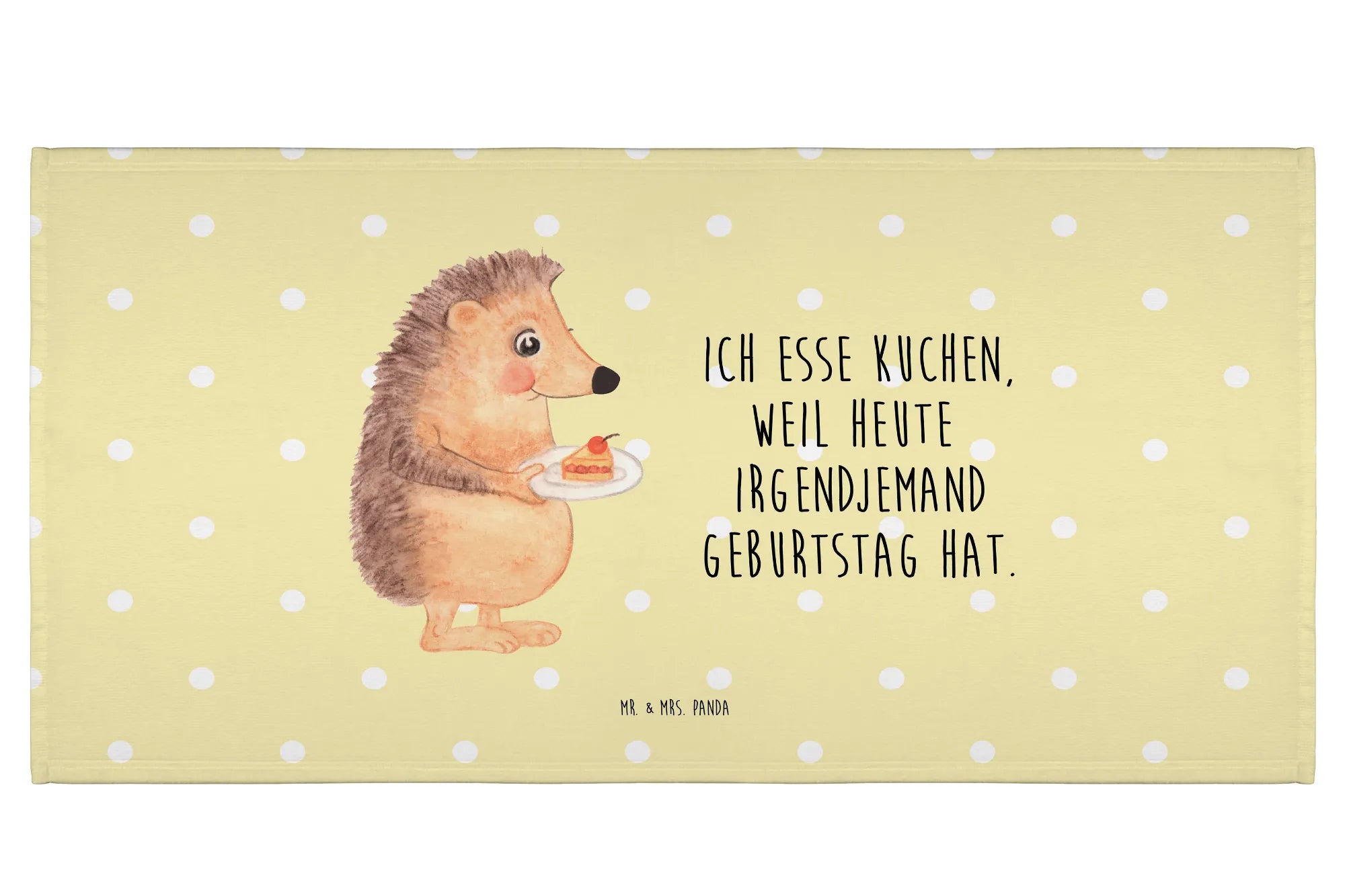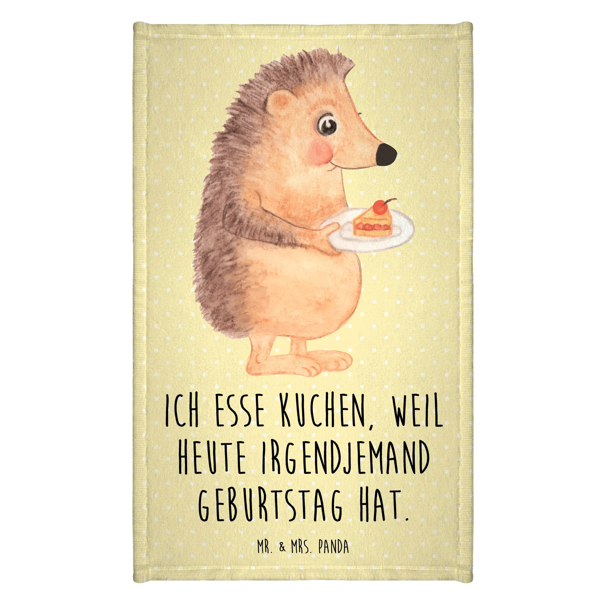 Wenn du auf der Suche nach einem perfekten Geschenk für kleine Backfans bist, dann ist das 50 x 100 Handtuch "Igel mit Kuchenstück" aus der Small World Kollektion von Mr. & Mrs. Panda genau das Richtige!