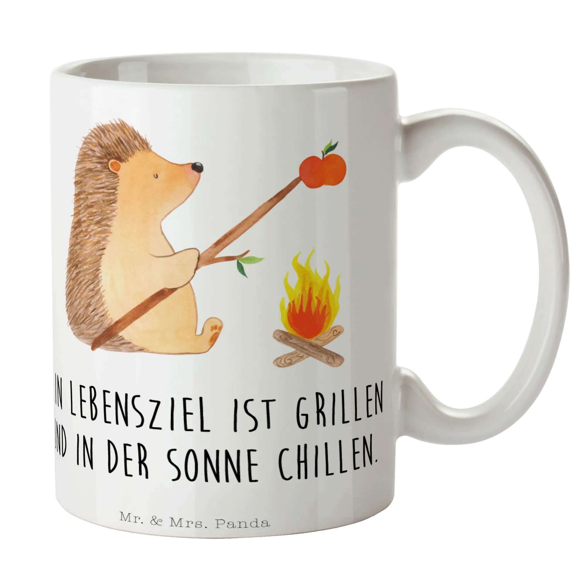 Suchst du nach dem perfekten Geschenk für einen Kaffee- oder Teeliebhaber in deinem Leben? Dann ist die wunderschöne Keramiktasse mit dem Motiv "Igel grillt" von Mr. & Mrs. Panda genau das Richtige! Diese charmante Tasse aus hochwertiger Keramik ist nicht nur spülmaschinenfest und mikrowellengeeignet, sondern auch ein echter Blickfang. Mit einem liebevoll gestalteten, handgezeichneten Igel, der am Lagerfeuer einen köstlichen Apfel grillt – dazu der fröhliche Spruch 'Mein Lebensziel ist grillen und in der Sonne chillen.' – zaubert sie jedem ein Lächeln ins Gesicht.