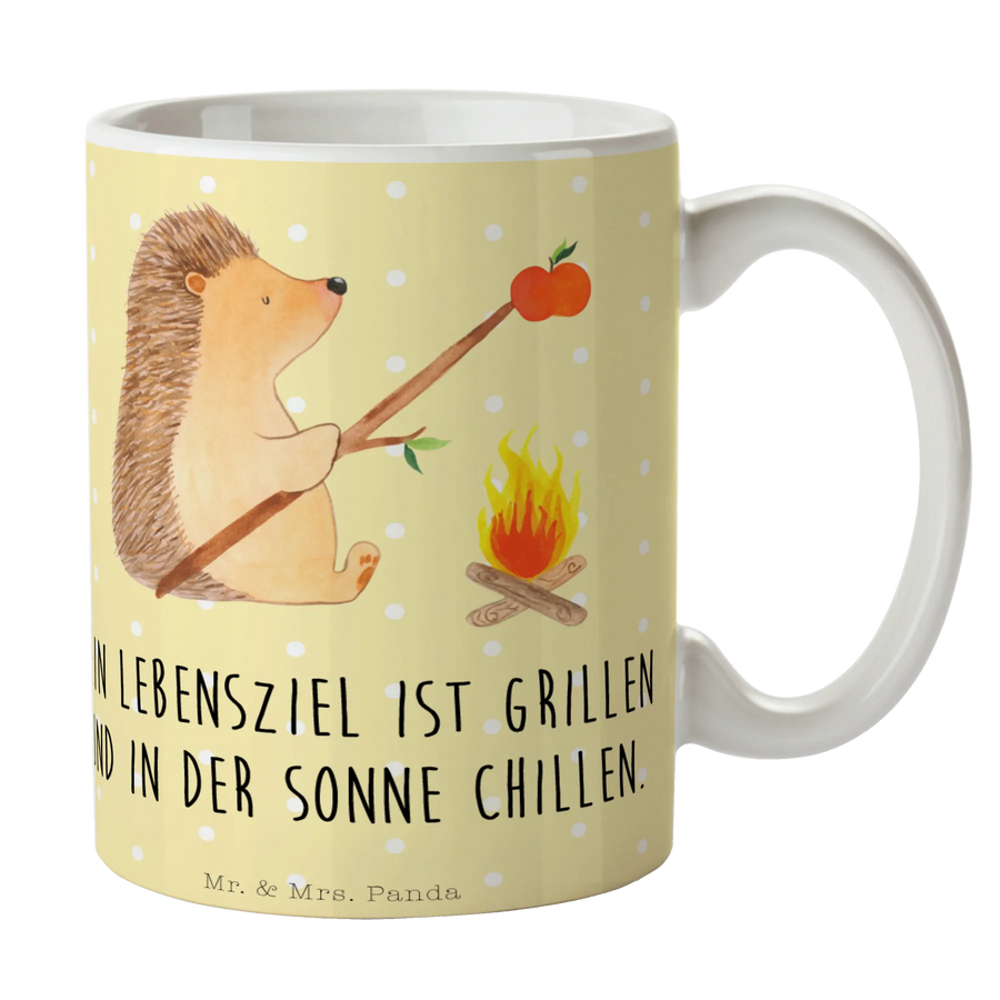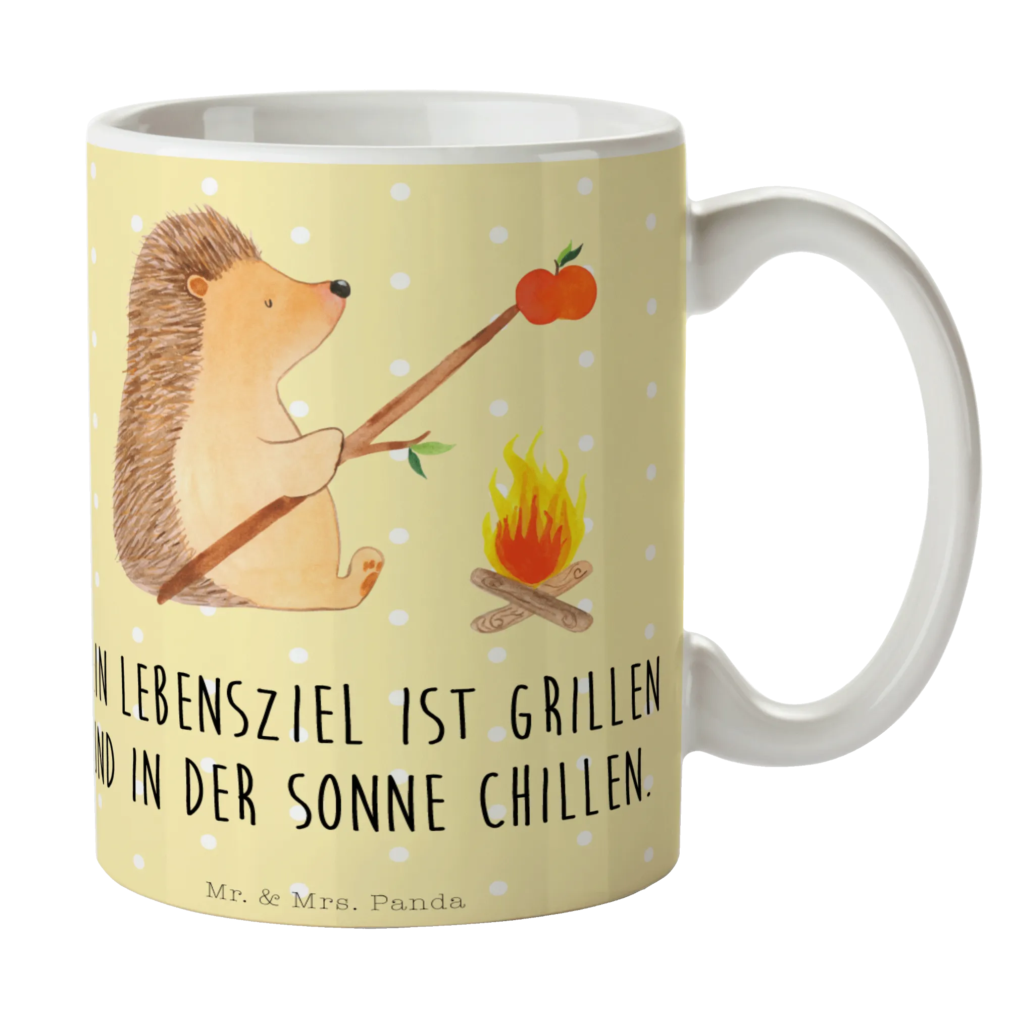 Tasse Igel grillt - mit Spruch - Keramik - Gelb Pastell