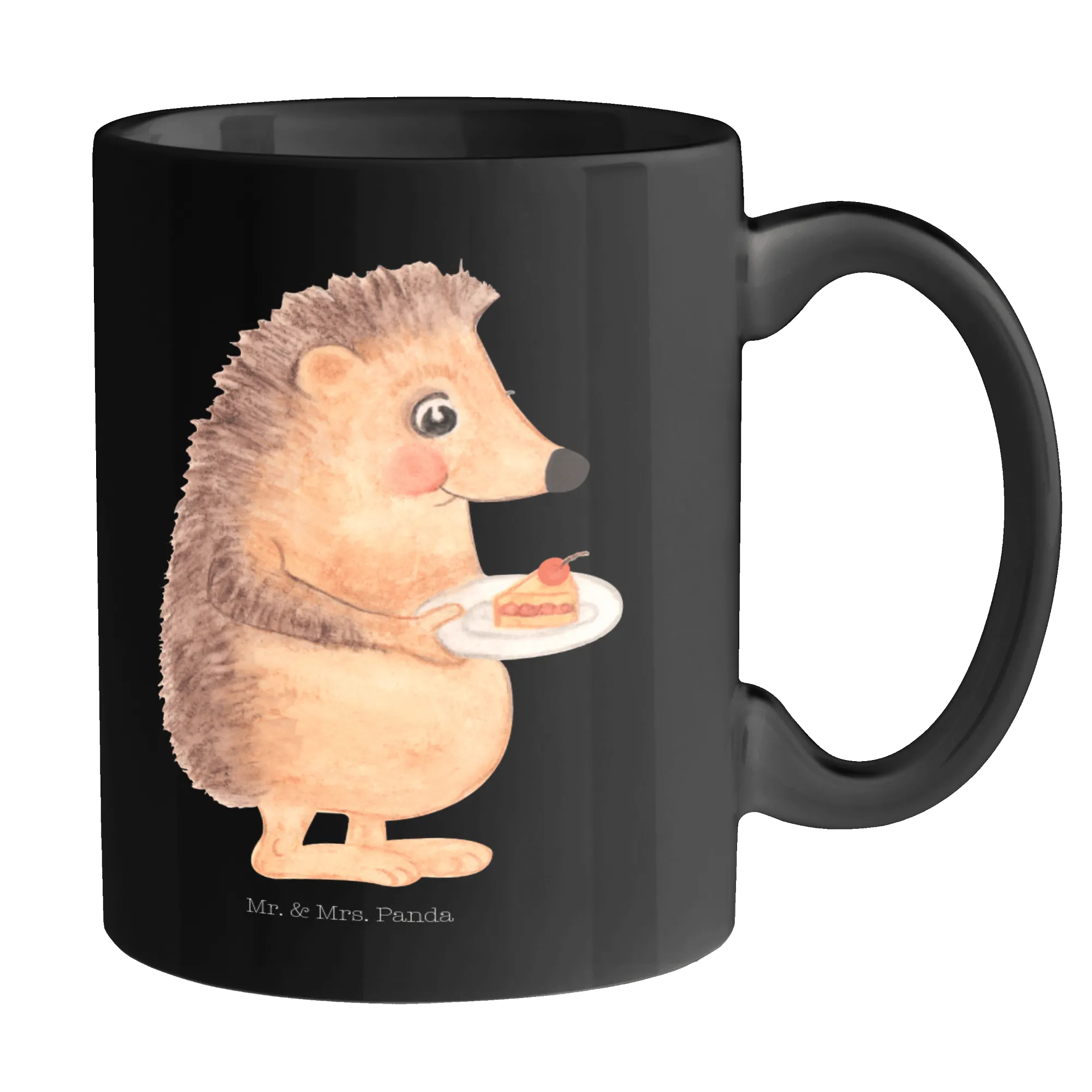 Tasse Igel Kuchenstück - ohne Spruch - Keramik Schwarz - Schwarz