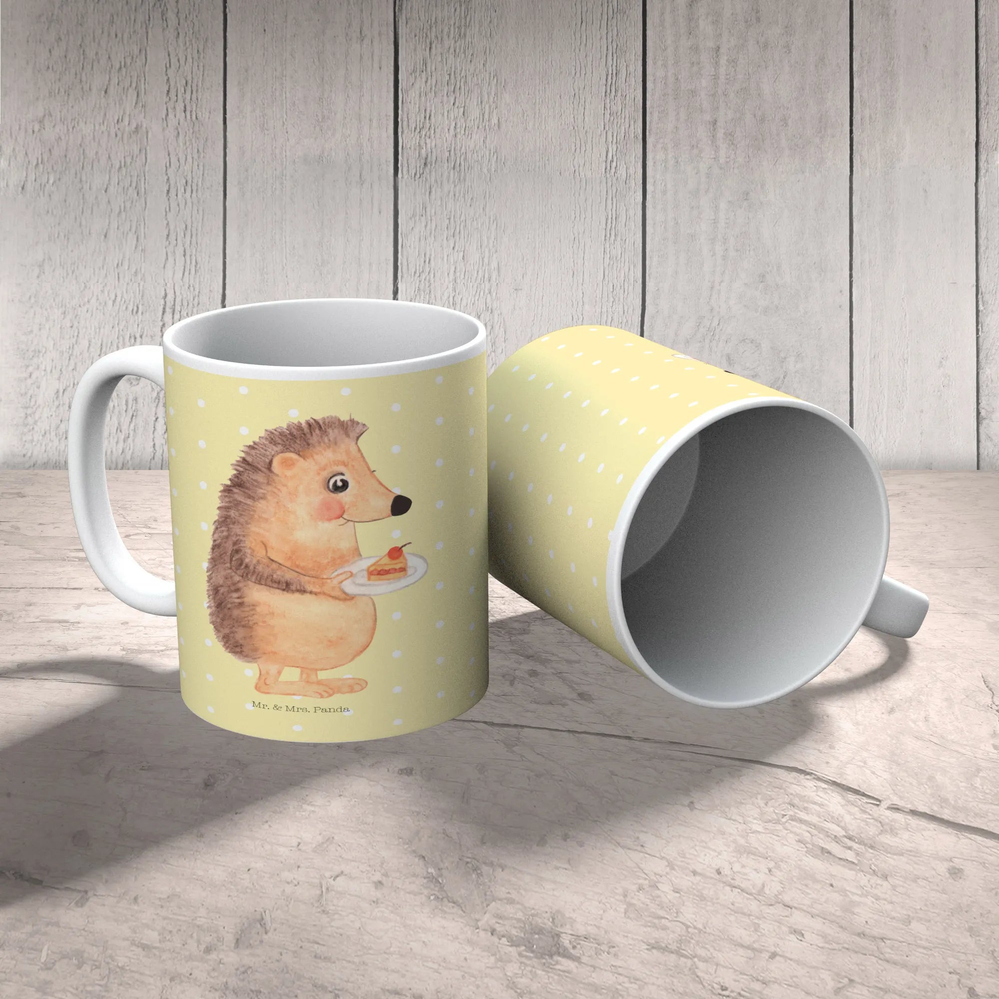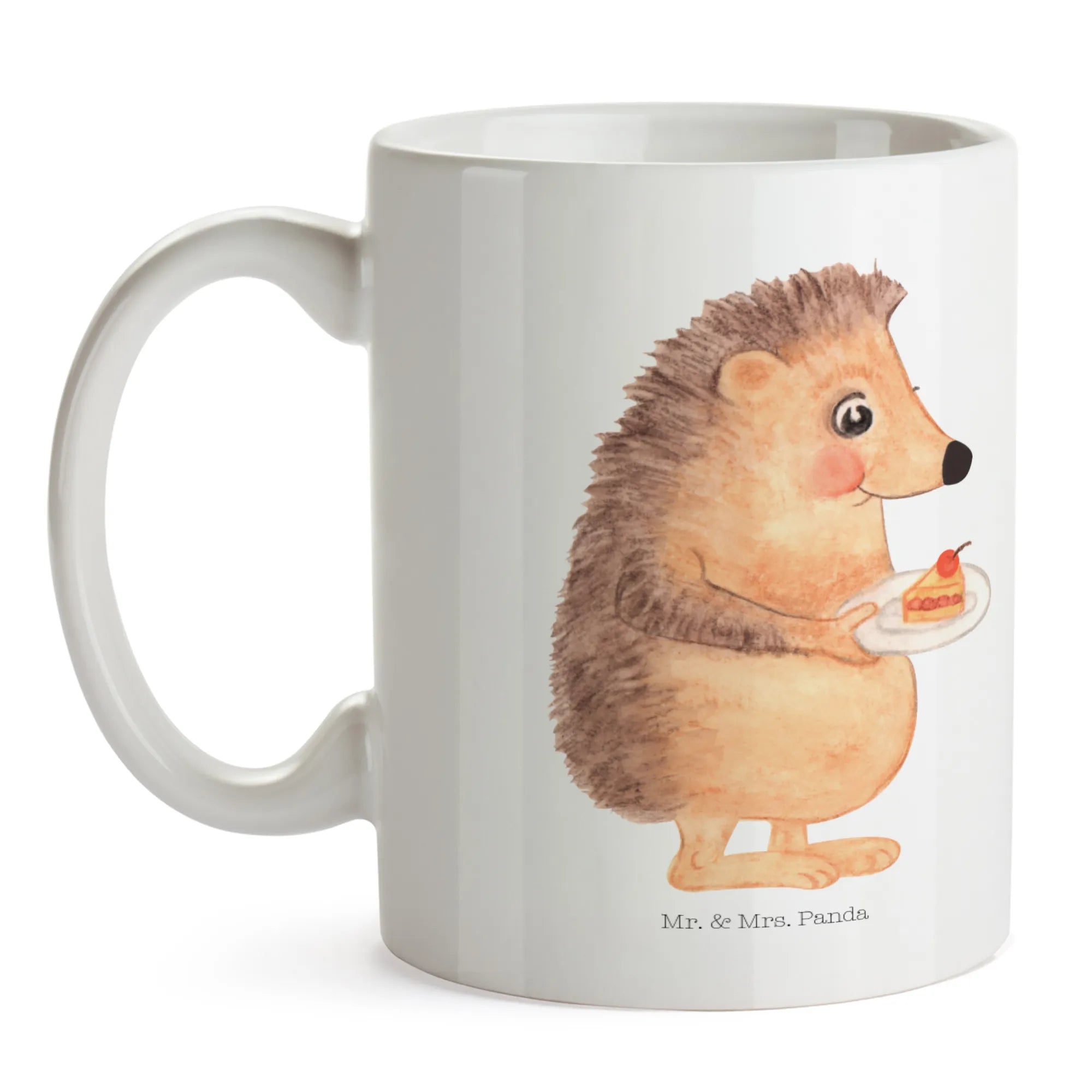 Jedes Mal, wenn die Tasse in Gebrauch ist, wird sie Freude und Glück ausstrahlen. Lass Deine Liebe zu Kuchen und kleinen Tieren auf eine charmante Art und Weise sprechen – mit der Tasse "Igel mit Kuchenstück" von Mr. & Mrs. Panda! Das perfekte Geschenk für alle Anlässe!