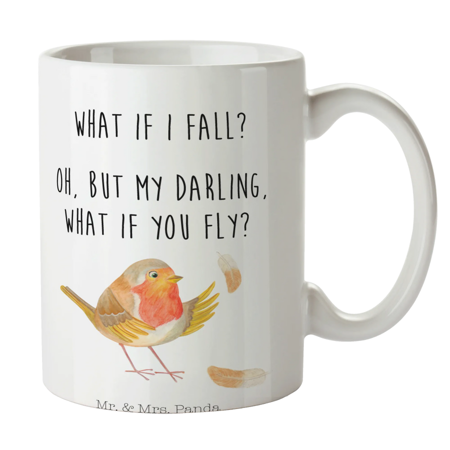 Mr. & Mrs. Panda Rotkehlchen mit Spruch „What if I fall?“ - Motivation und Mut Inspirierend