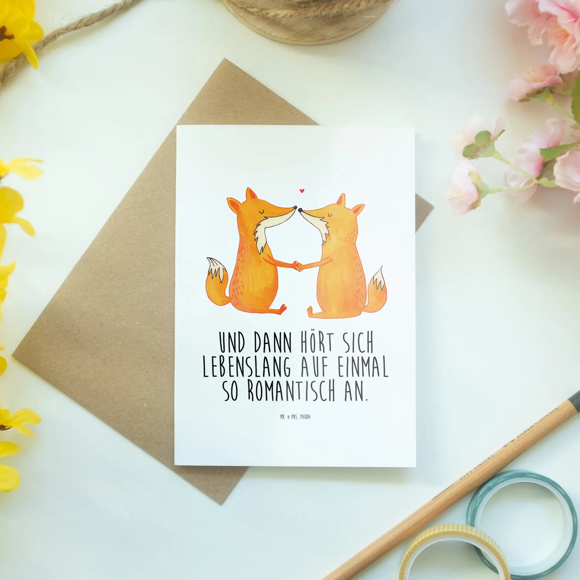 Liebst du es, deinen Liebsten mit besonderen Worten zu überraschen? Dann ist die Grußkarte "Füchse Liebe" aus der bezaubernden Fuchs-Kollektion von Mr. & Mrs. Panda genau das Richtige für dich! Diese exquisit gestaltete Klappkarte bringt sofort ein Lächeln auf die Gesichter deiner Freunde und Familie.