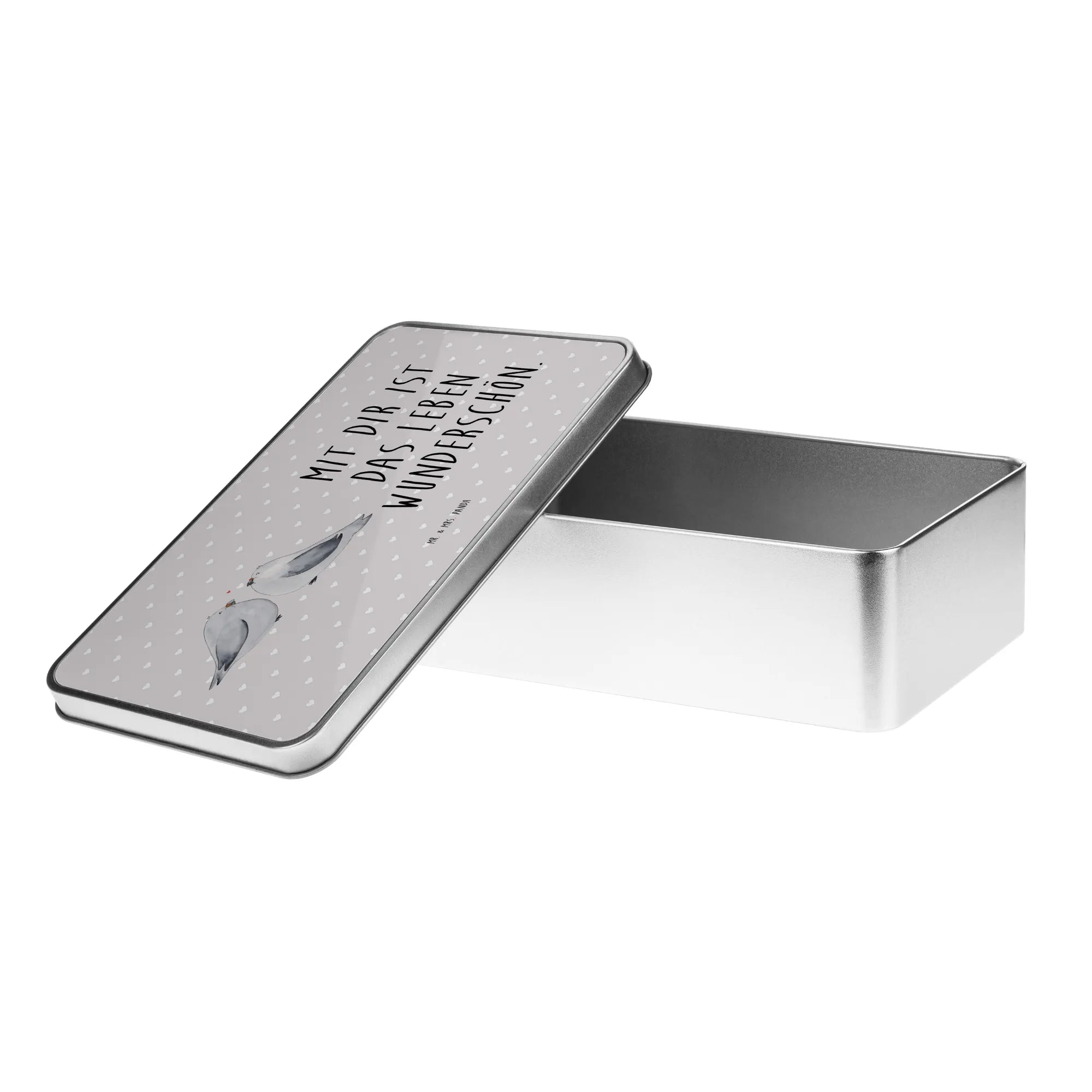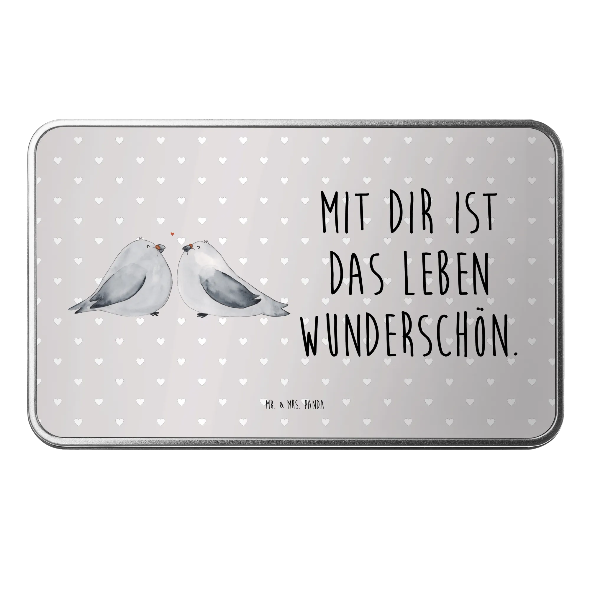 Entdecke unsere wunderschöne rechteckige Metalldose von Mr. & Mrs. Panda, bedruckt mit dem bezaubernden Motiv der Turteltauben Liebe. Diese kostbare Dose ist nicht nur ein schöner Blickfang, sondern auch ein praktischer Begleiter für alle, die das Gefühl der Liebe in ihrem Alltag spüren möchten. Die süßen Turteltäubchen in Grau- und Weißtönen neigen sich zärtlich zueinander, während ein kleines rotes Herz zwischen ihren Schnäbeln schwebt – ein Zeichen der innigen Verbundenheit. Mit der Aufschrift 'Mit dir ist das Leben wunderschön.' zeigst Du deinem Partner, wie viel er dir bedeutet.