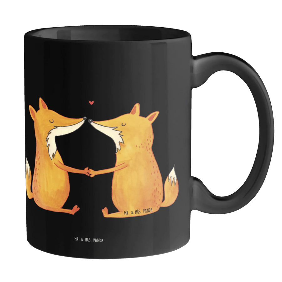 Tasse Füchse Liebe - ohne Spruch - Keramik Schwarz - Schwarz