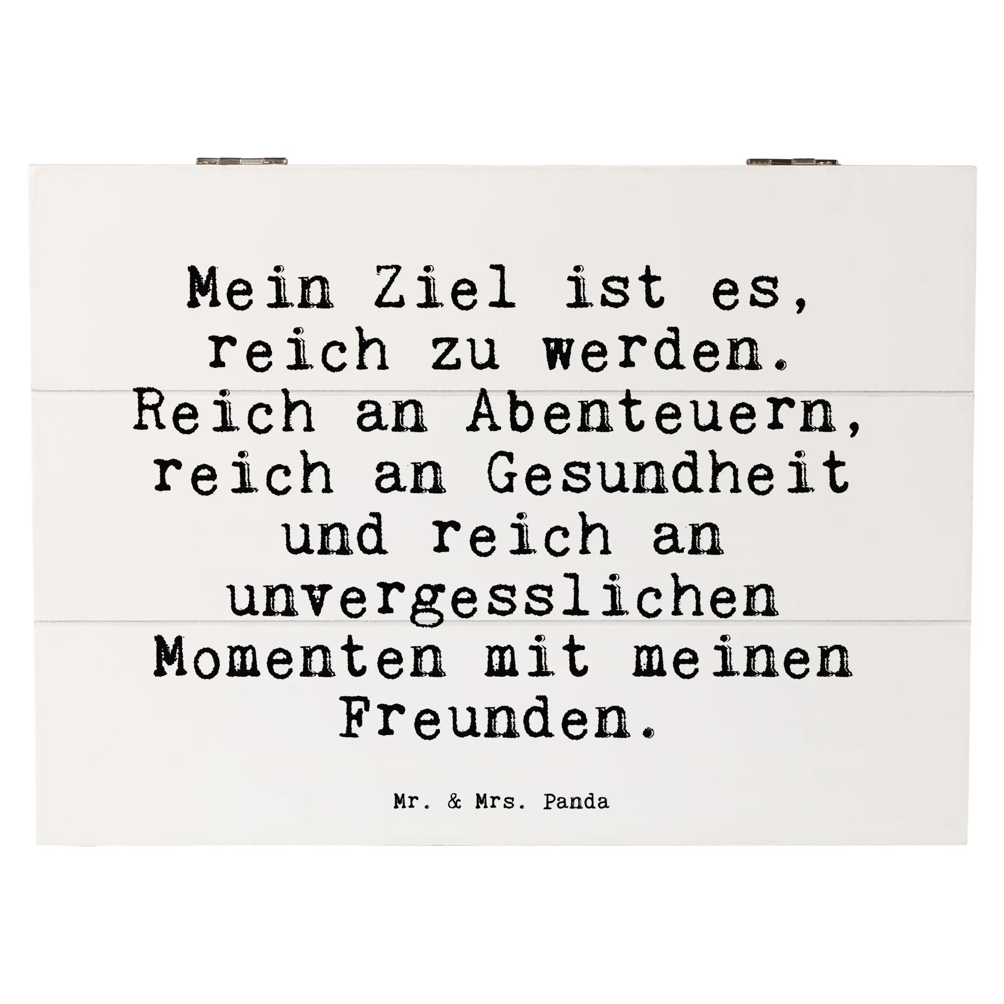 Diese wunderschöne Holzkiste von Mr. & Mrs. Panda ist das perfekte Geschenk für besondere Anlässe! Mit dem inspirierenden Spruch 'Mein Ziel ist es, reich zu werden. Reich an Abenteuern, reich an Gesundheit und reich an unvergesslichen Momenten mit meinen Freunden.' wird sie schnell zum Lieblingsstück und Erinnerungsort für viele.