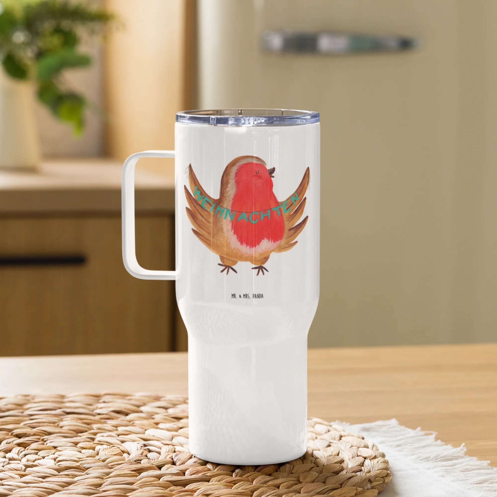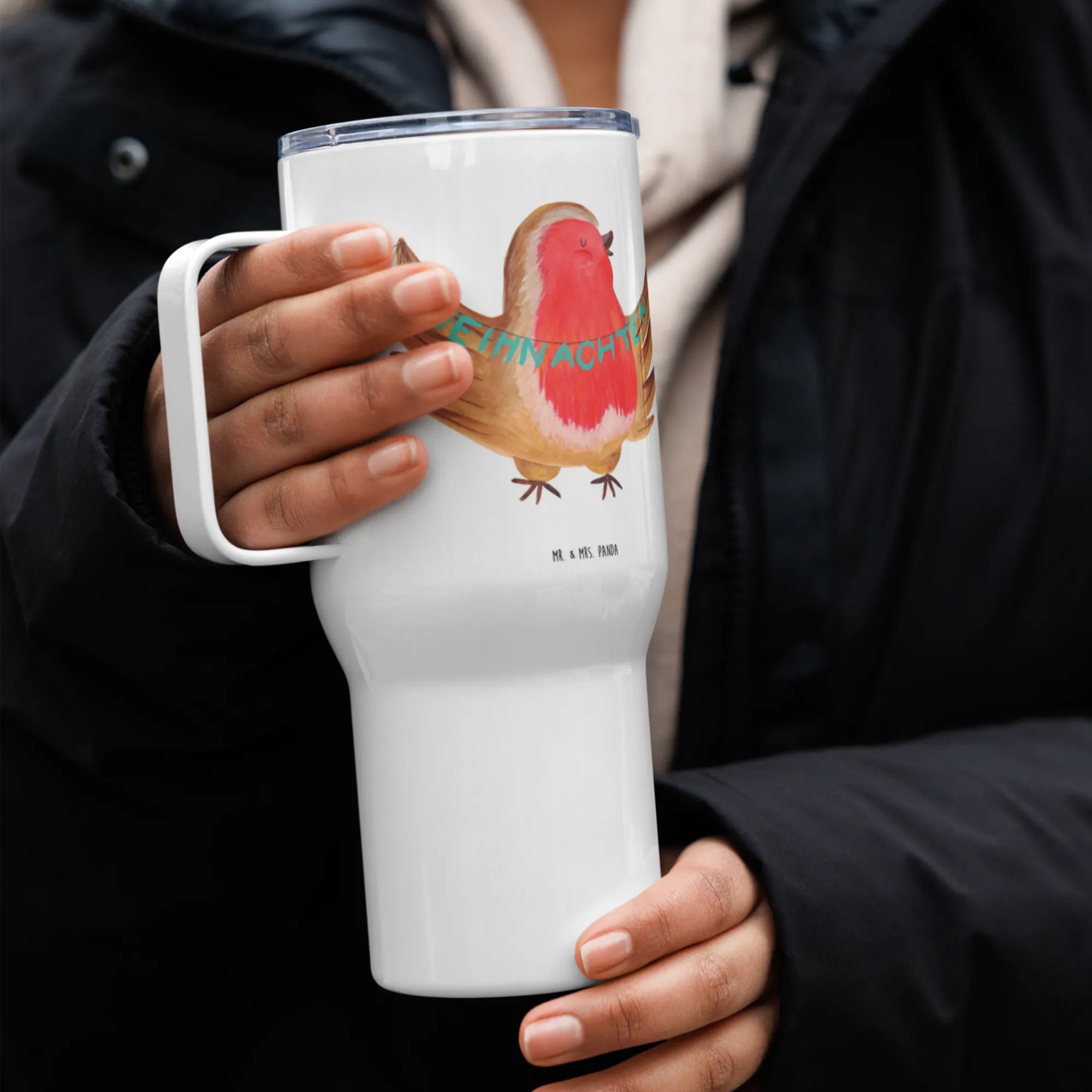 XXL Thermobecher Rotkehlchen Weihnachten - mit Spruch