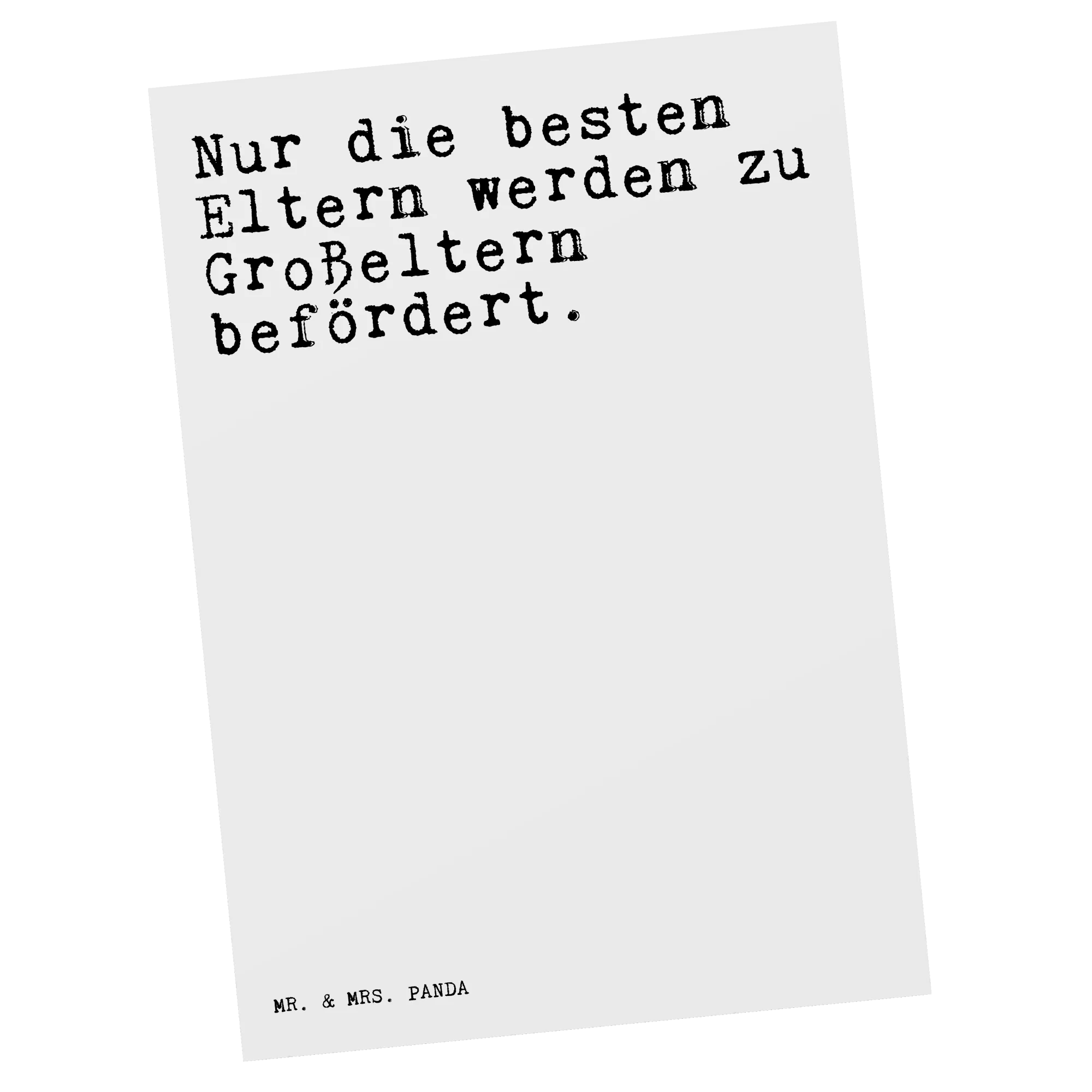 Entdecke die einzigartige Postkarte von Mr. & Mrs. Panda, die mit einem liebevollen Spruch veredelt ist: "Nur die besten Eltern werden zu Großeltern befördert." Diese wunderschöne Karte ist das perfekte Geschenk für neue Großeltern, die voller Stolz auf die Geburt ihres Enkels oder ihrer Enkelin zurückblicken.