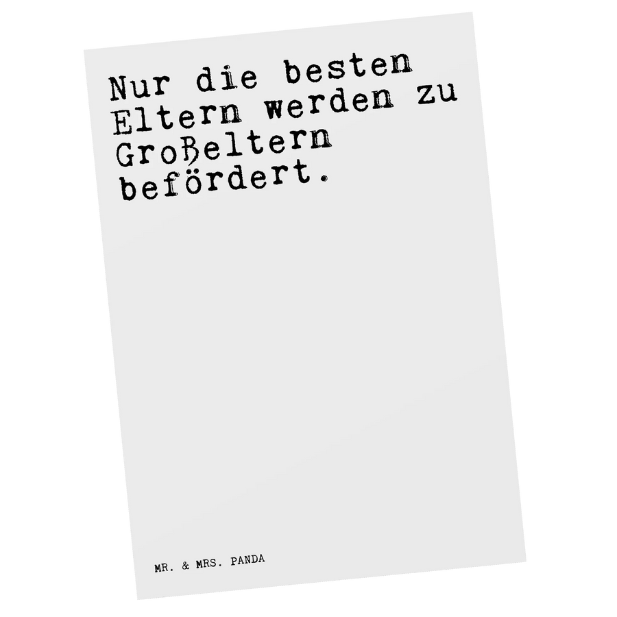 Mach Großeltern eine Freude mit einem kleinen, aber bedeutsamen Geschenk, das ihre Herzen berührt. Es besteht immer die Möglichkeit, diese Karte zusätzlich mit einer persönlichen Nachricht zu versehen, um sie noch individueller zu gestalten. Die Spruchreif Kollektion von Mr. & Mrs. Panda hält für jeden Moment den richtigen Spruch bereit. Lass dich inspirieren und versüße das Leben deiner Liebsten mit dieser witzigen und herzlichen Postkarte!