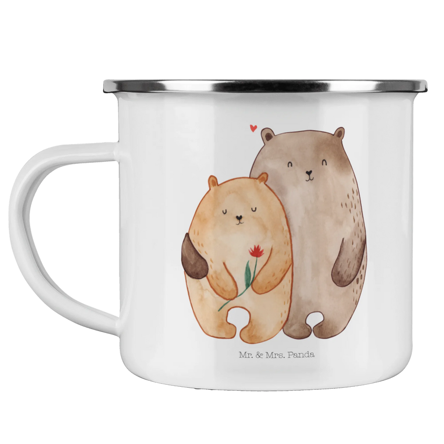 Die Camping Emaille Tasse mit dem niedlichen Motiv der Bären Liebe von Mr. & Mrs. Panda ist das perfekte Geschenk für alle Verliebten und Naturliebhaber. Diese wunderschöne und beständige Tasse wurde aus kratzfester Emaille gefertigt und ist ideal für deine nächsten Campingausflüge oder Wanderungen.