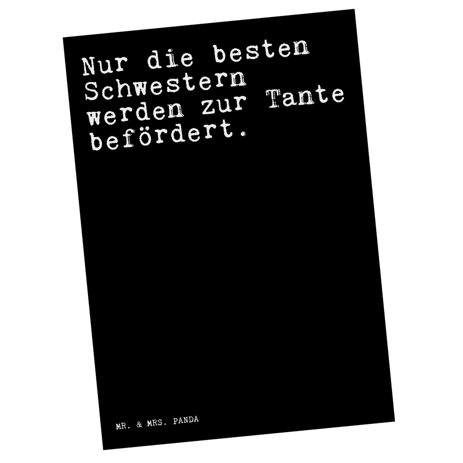 Diese Postkarte eignet sich nicht nur für Geburtstage oder Einladungen zur Geburt, sondern auch als Dankeskarte für liebevolle Schwestern, die immer für dich da sind. Zeig ihr, wie wichtig sie für dich ist! Außerdem ist diese Karte die perfekte Wahl, wenn du nach einem Geschenk für deine Tante suchst, denn auch sie wird schmunzeln, wenn sie diesen Spruch liest.