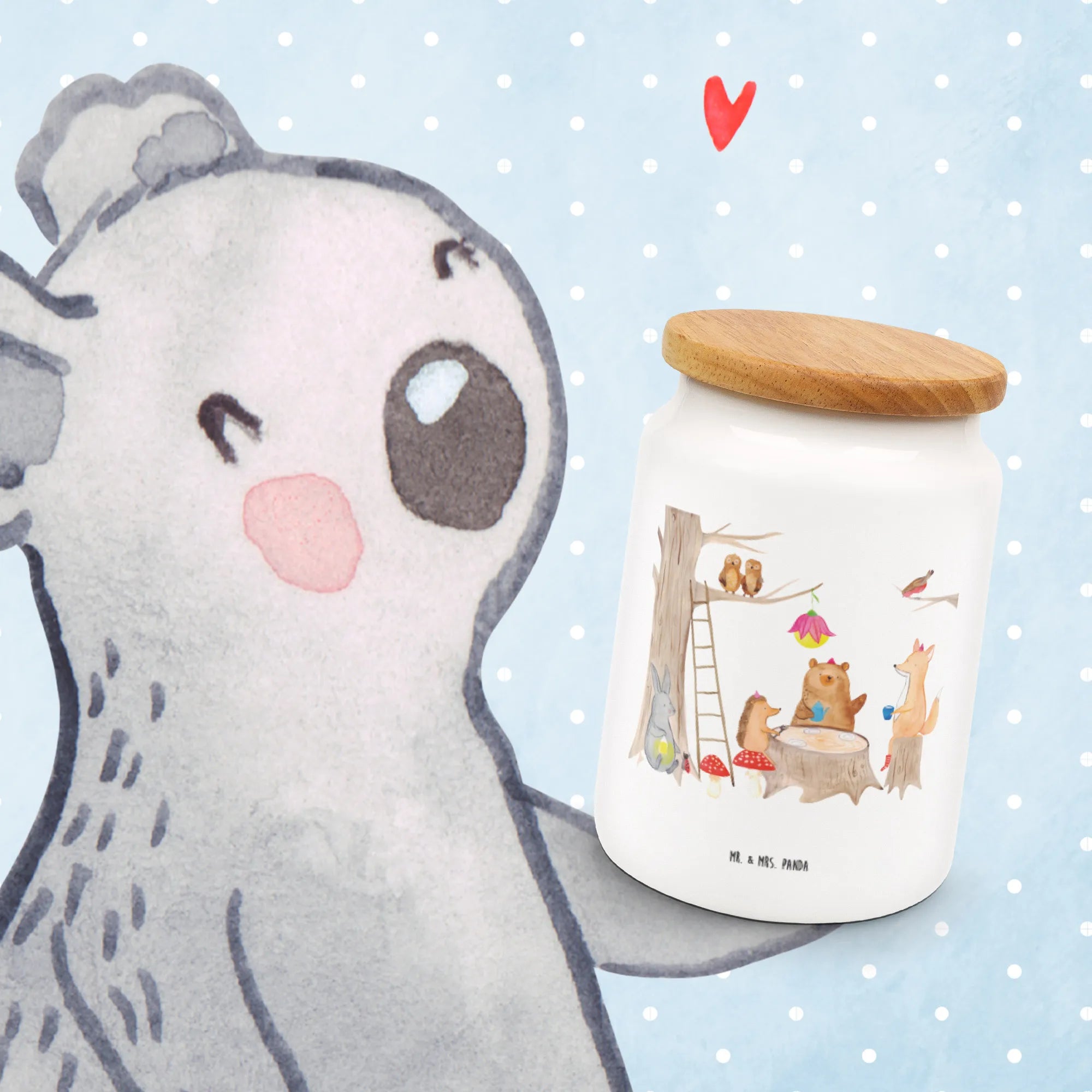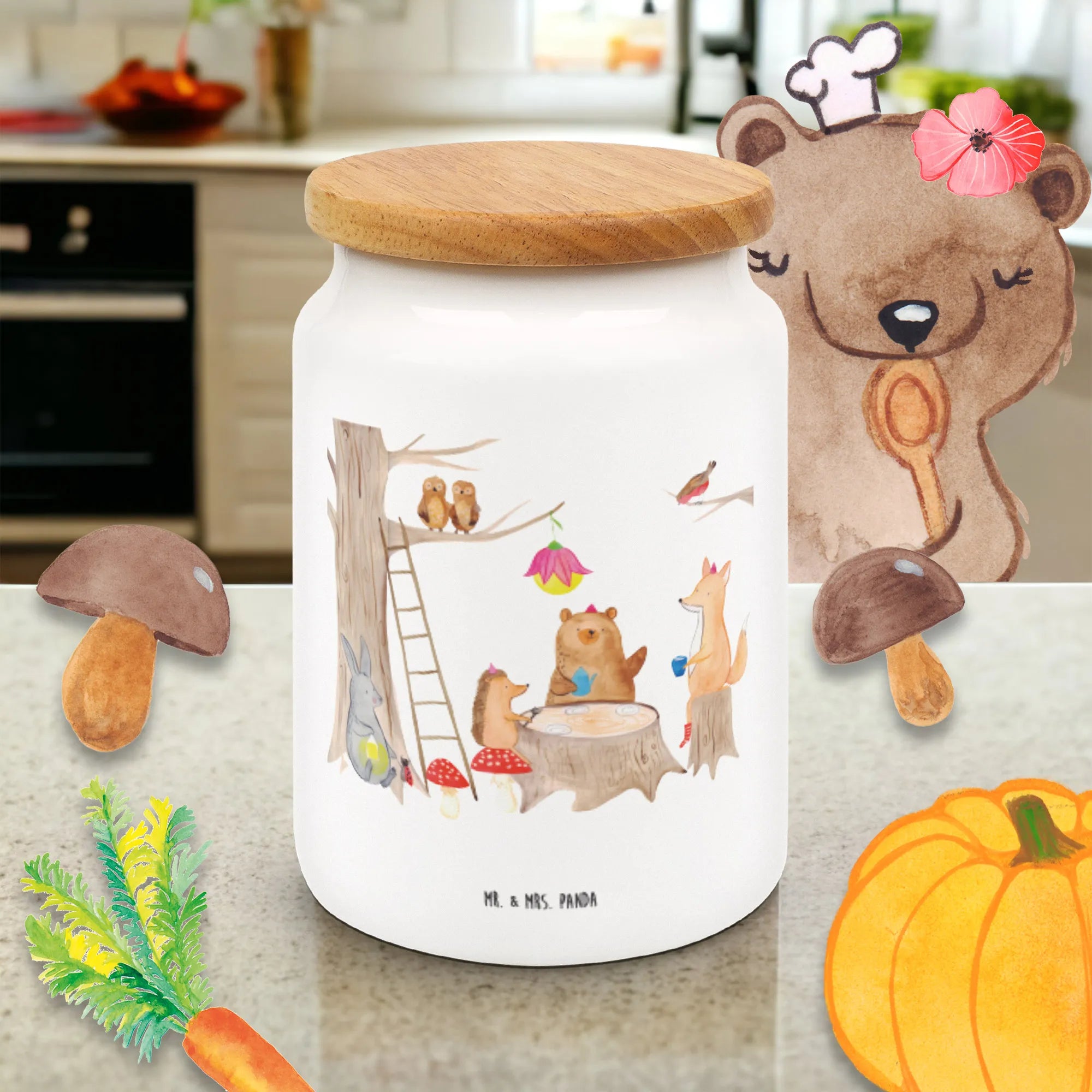 Entdecke die niedliche Vorratsdose von Mr. & Mrs. Panda mit dem besonderen Motiv "Waldtiere Picknick"! Diese liebevoll bedruckte Keramikdose ist nicht nur ein echter Blickfang, sondern auch ein praktischer Helfer in deiner Küche. Egal, ob du Kekse, Tee oder andere Leckereien aufbewahren möchtest, diese Dose bietet ausreichend Platz und hält deine Snacks frisch.