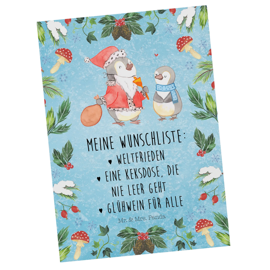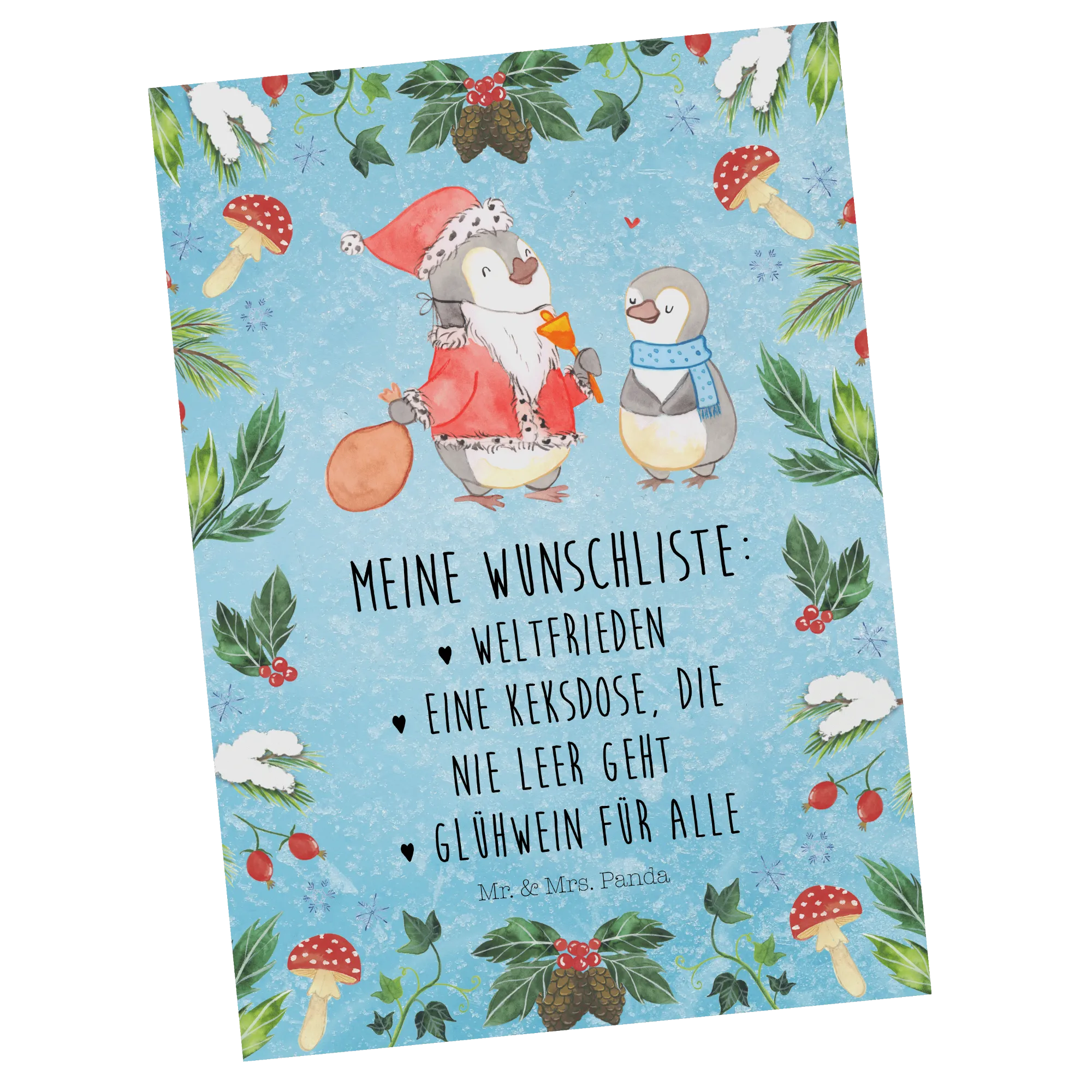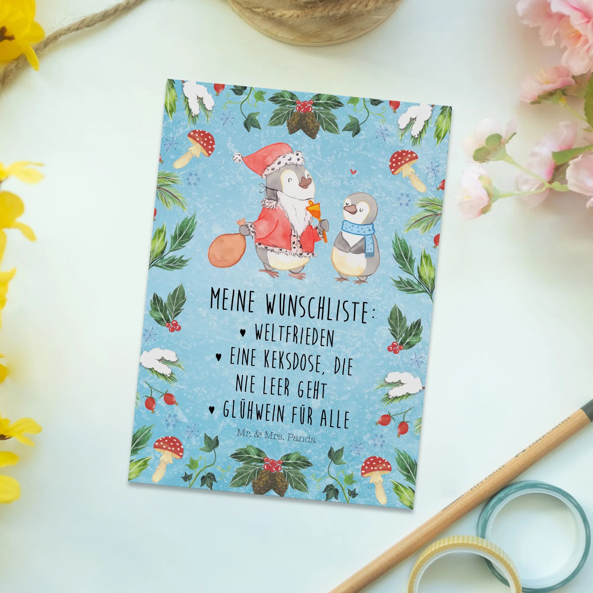 Postkarte Pinguin Wunschliste - mit Spruch - Eisblau
