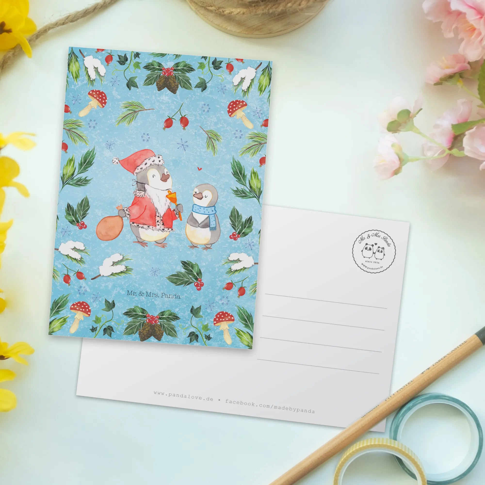 Die wunderschöne Postkarte "Pinguin Wunschliste" aus der exklusiven Winter Kollektion von Mr. & Mrs. Panda ist der perfekte Begleiter für die besinnliche Zeit des Jahres. Der niedliche Pinguin, der sich als Nikolaus verkleidet hat und einen großen Sack voller Geschenke mit sich trägt, zaubert jedem ein Lächeln ins Gesicht.