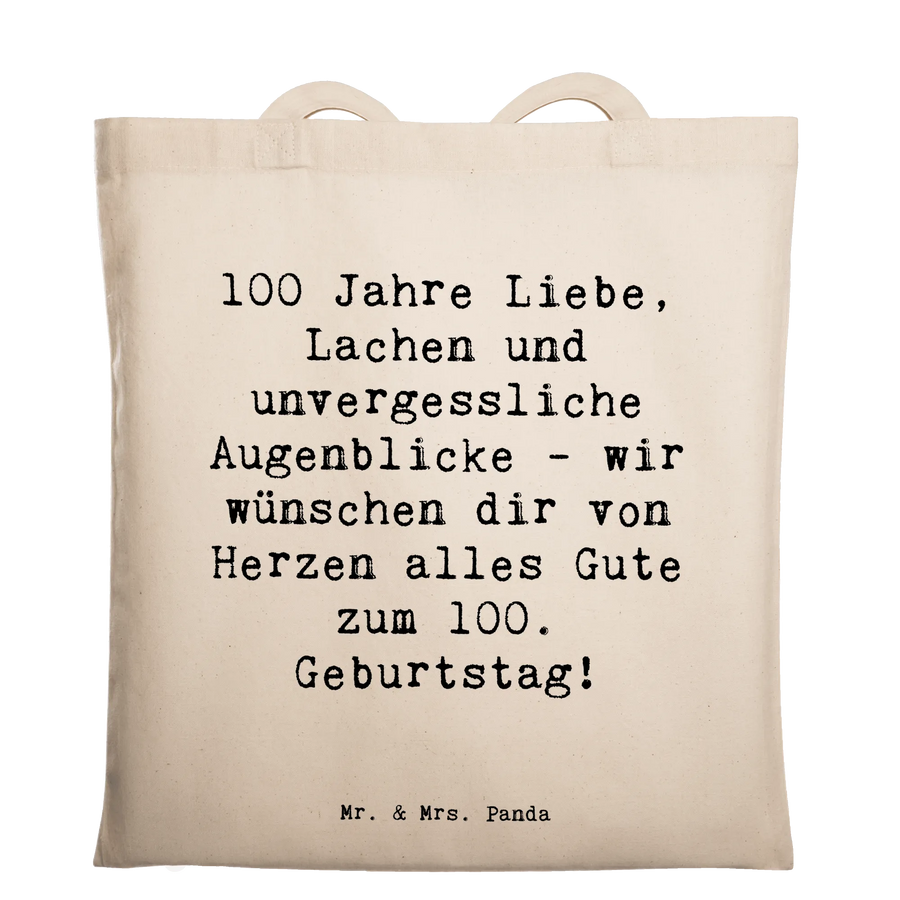 Ein Geschenk, das von Herzen kommt: Unsere Mr. & Mrs. Panda Tragetasche zum 100. Geburtstag vereint Charme, Nützlichkeit und eine liebevolle Botschaft. Mit dem warmen Spruch „100 Jahre Liebe, Lachen und unvergessliche Augenblicke - wir wünschen dir von Herzen alles Gute zum 100. Geburtstag!“ ist diese Tasche ideal für Familien, Freund*innen und Nachbar*innen, die einem besonderen Menschen zu einem außergewöhnlichen Geburtstag gratulieren möchten. 🎉