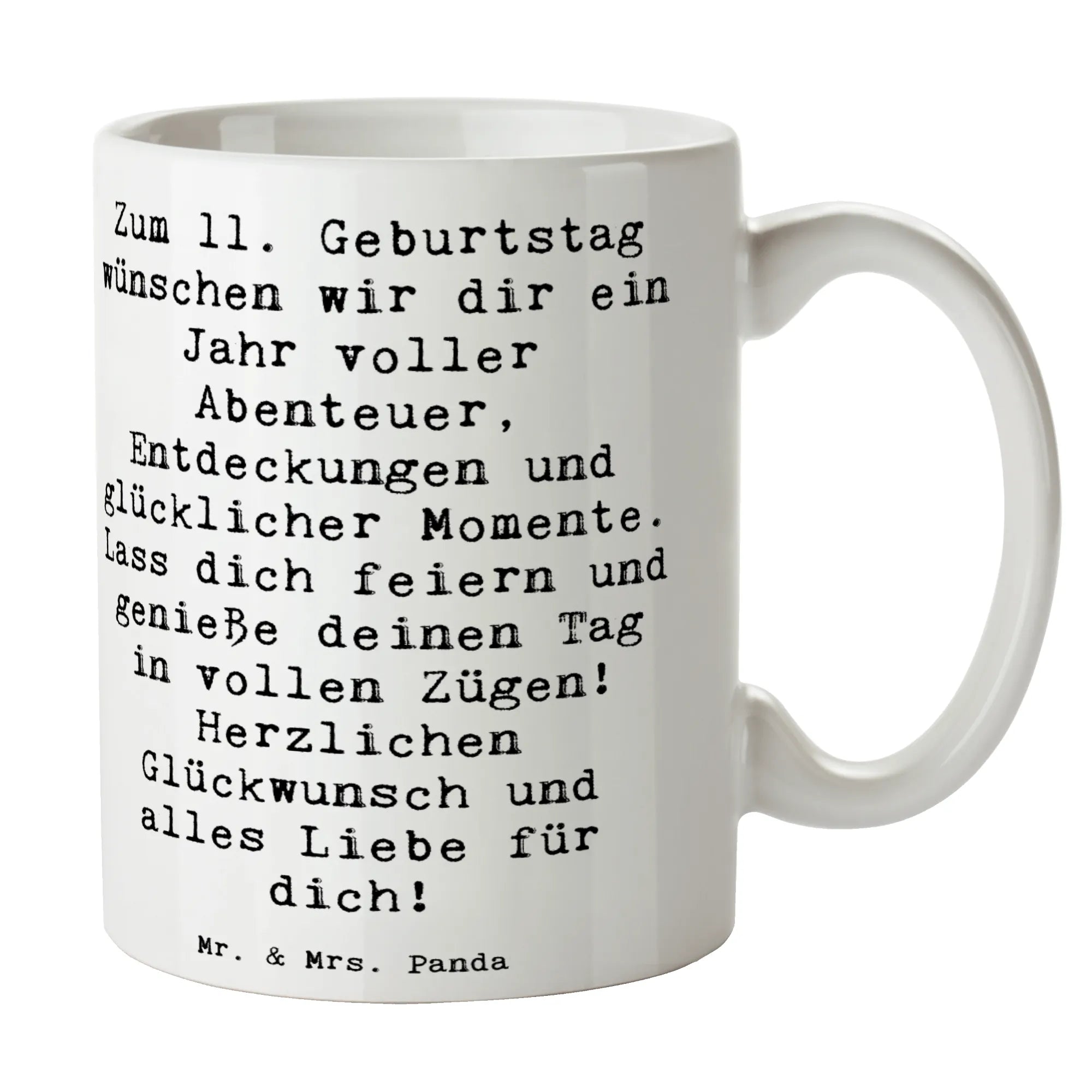Verschenke Freude und Abenteuer mit der Tasse zum 11. Geburtstag von Mr. & Mrs. Panda!
