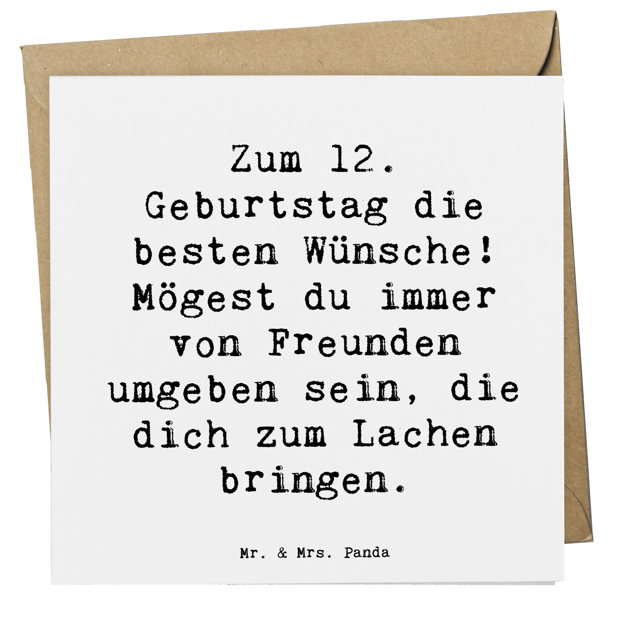 Entdecke die Deluxe Karte zum 12. Geburtstag aus der Geburtstagskollektion von Mr. & Mrs. Panda! Diese wunderschöne und besonders hochwertige quadratische Karte ist nicht nur ein einfacher Karton – sie ist ein kleines Kunstwerk, das speziell für diesen wichtigen Anlass entworfen wurde. Mit einem liebevollen Motiv, das den 12. Geburtstag feiert, zaubert sie ein Lächeln auf das Gesicht des Geburtstagskindes. Der liebevolle Spruch auf der Vorderseite "Zum 12. Geburtstag die besten Wünsche! Mögest du immer von Freunden umgeben sein, die dich zum Lachen bringen." bringt die herzlichen Glückwünsche perfekt zum Ausdruck.