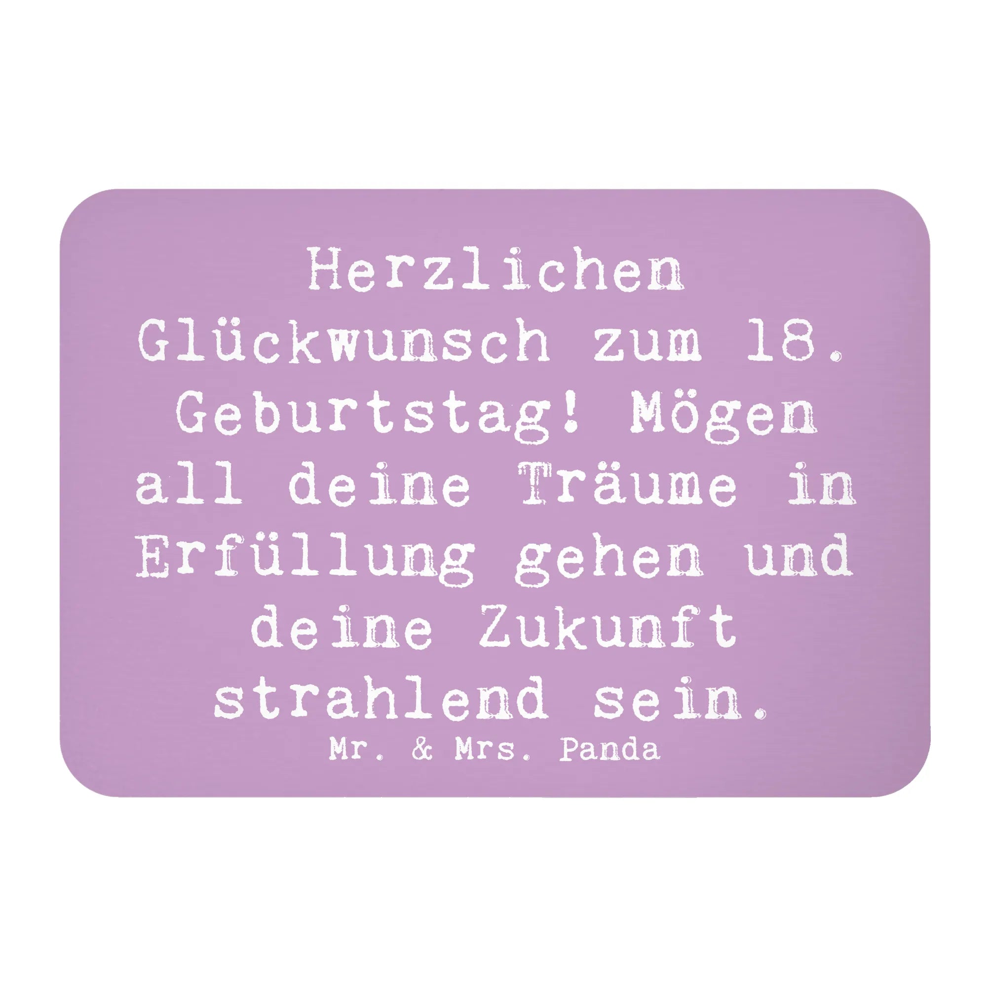 Der Magnet "Herzlichen Glückwunsch zum 18. Geburtstag! Mögen all deine Träume in Erfüllung gehen und deine Zukunft strahlend sein." von Mr. & Mrs. Panda ist nicht nur ein wunderschönes Deko-Highlight für jeden Kühlschrank, sondern auch ein perfektes Geschenk für alle, die den Sprung ins Erwachsenenleben feiern. Ob als Geburtstagsüberraschung oder als charmöses Souvenir – dieser Magnet sorgt für ein Lächeln!
