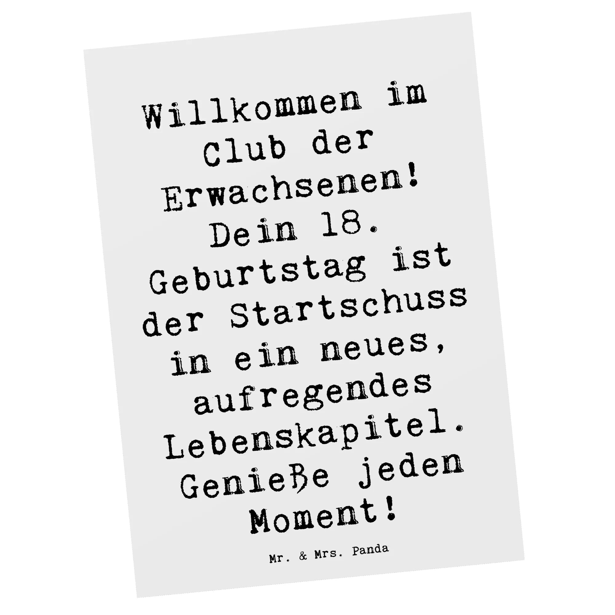 Unsere Panda-Fans suchen auch nach: Willkommen im Club der Erwachsenen, 18. Geburtstag, Startschuss in ein neues Lebenskapitel, aufregendes Lebenskapitel, Genieße jeden Moment, Volljährigkeit, neue Möglichkeiten, Abenteuer, persönliche Wachstum, feiern, Entdecken, schöne Momente genießen, Welt der Erwachsenen, aufregende Erfahrungen, inspirieren, motivieren, unvergessliche Reise