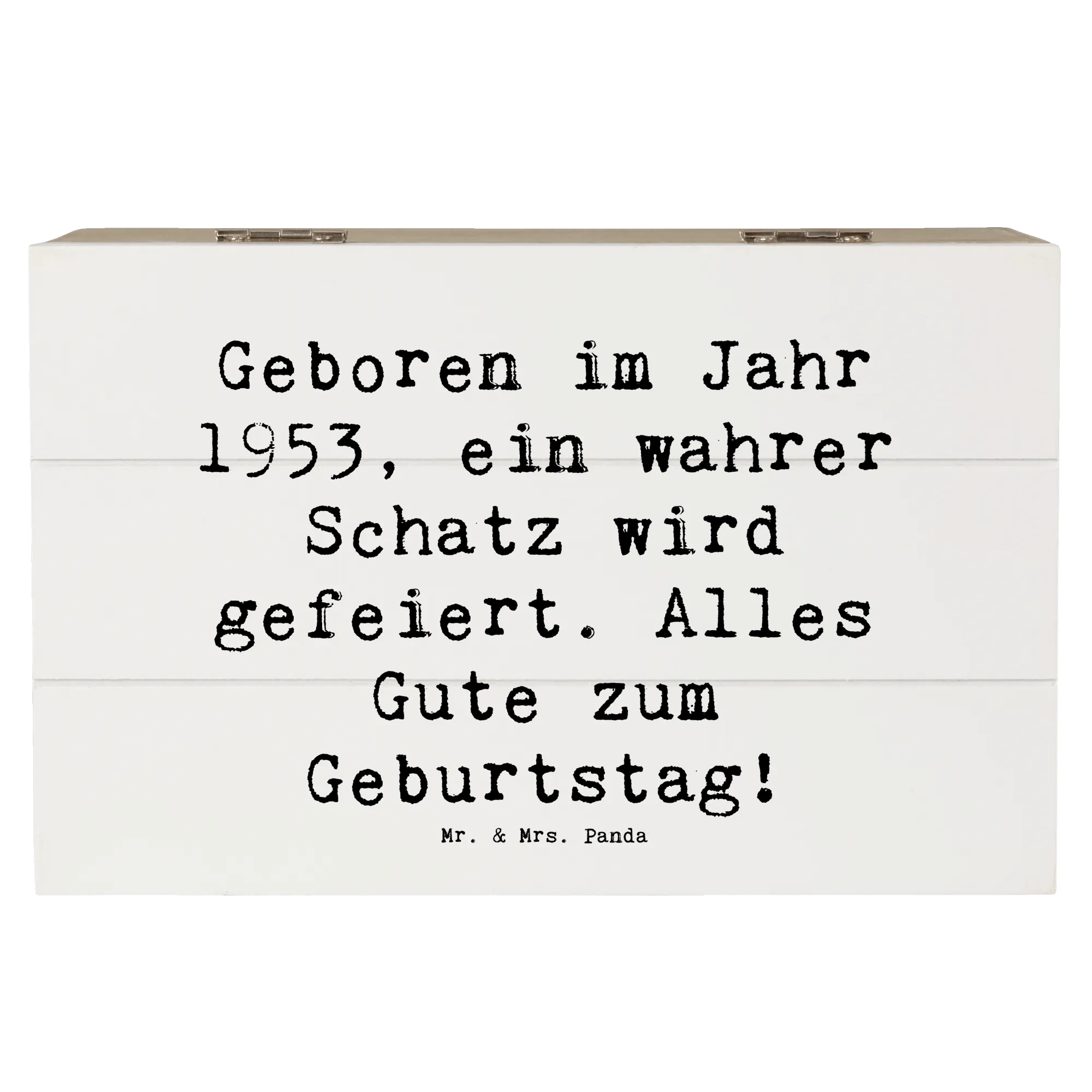 Die wunderschöne Holzkiste von Mr. & Mrs. Panda ist das perfekte Geschenk für all jene, die im Jahr 1953 geboren wurden. Egal ob zum 70. oder 80. Geburtstag – diese Schatzkiste erzählt eine ganz besondere Geschichte!