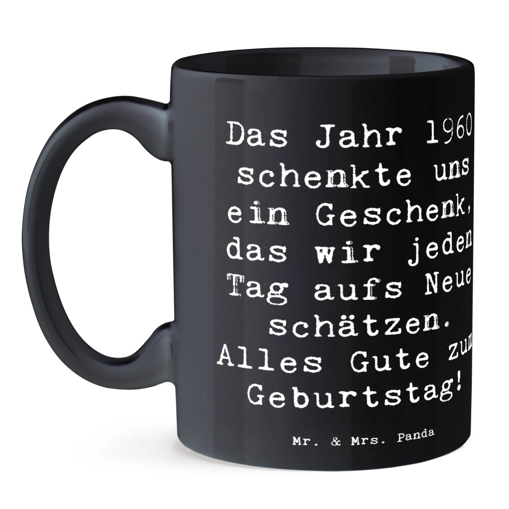 Entdecke, wie diese Tasse jeden Geburtstag zu etwas Besonderem machen kann! Mach Deinen Lieben eine Freude und zeige ihnen, wie sehr Du sie schätzt. Mit der 1960 Geburtstagstasse von Mr. & Mrs. Panda kreierst Du ein Geschenk, das gerne genutzt wird und gleichzeitig eine Geschichte erzählt. Lege die perfekte Grundlage für viele gemeinsame Kaffeepausen oder Teestunden und feiere die Lebensfreude und die besonderen Jahre miteinander.