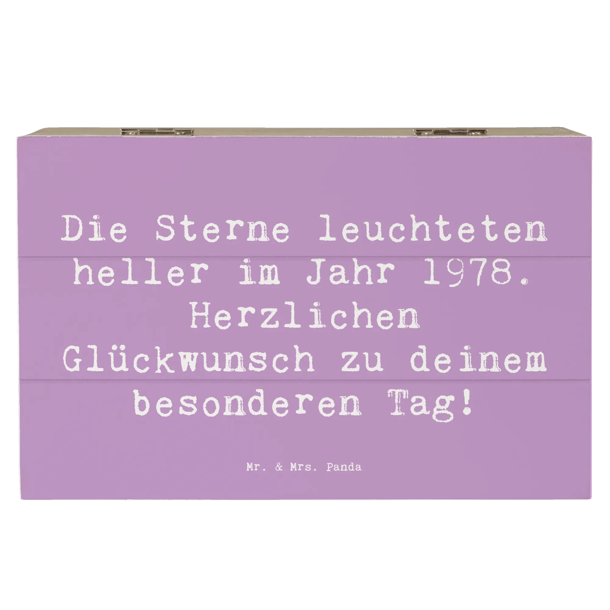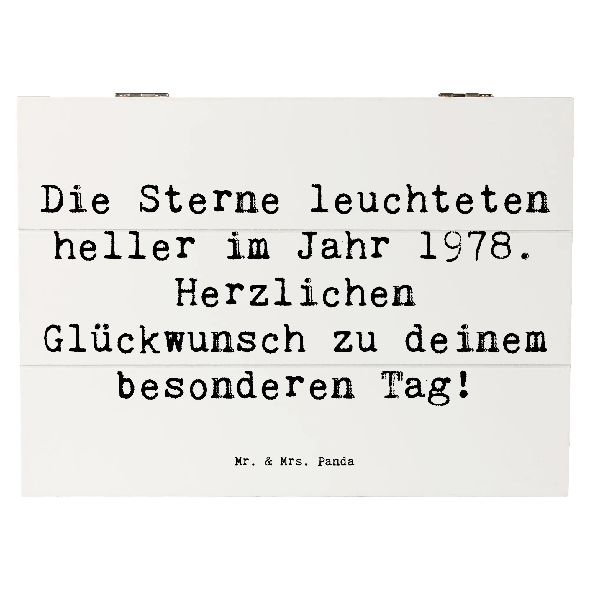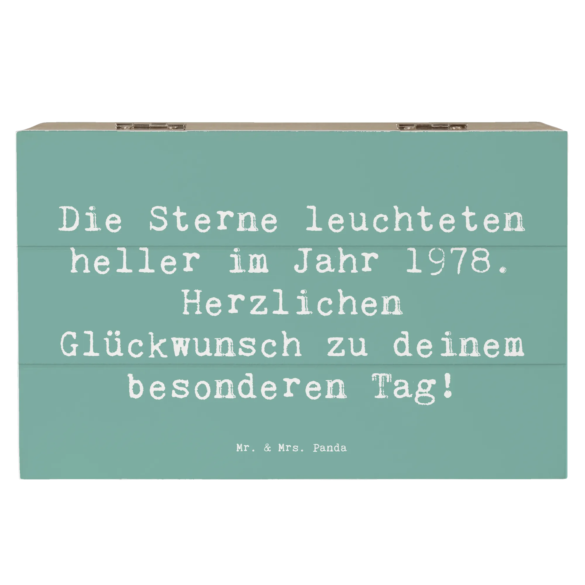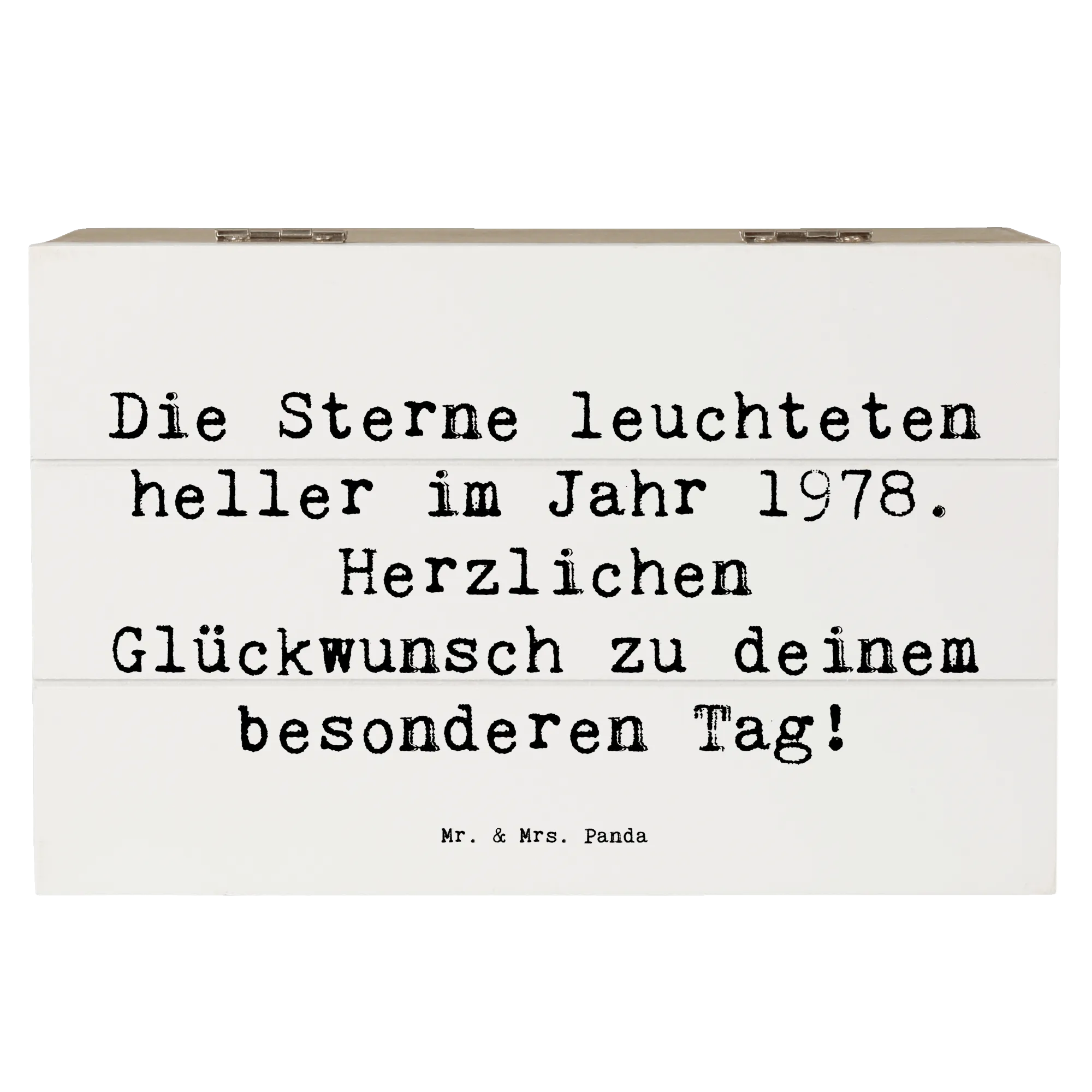 Die wunderschöne Holzkiste von Mr. & Mrs. Panda ist das perfekte Geschenk für alle, die 1978 Geburtstag feiern! Mit dem liebevollen Motto "Die Sterne leuchteten heller im Jahr 1978. Herzlichen Glückwunsch zu deinem besonderen Tag!" wird diese Erinnerungskiste schnell zum wertvollen Aufbewahrungsort für besondere Schätze.