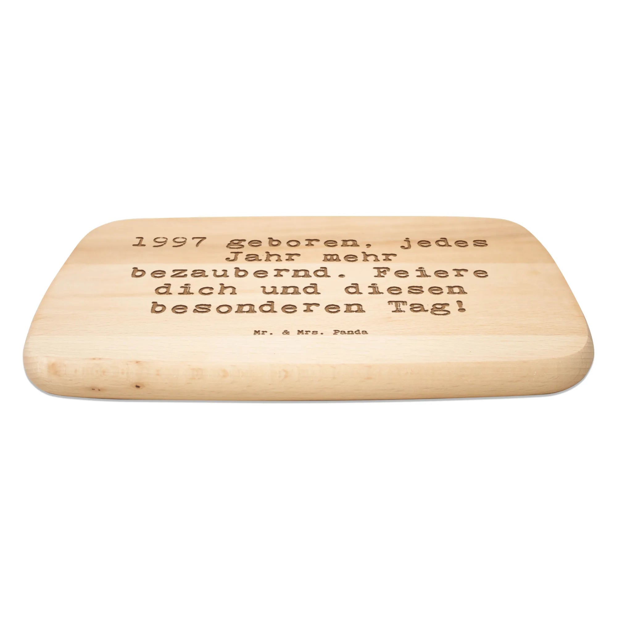 Das Frühstücksbrett von Mr. & Mrs. Panda ist nicht nur praktisch, sondern auch ein ganz besonderes Geschenk für alle, die im Jahr 1997 geboren wurden! Mit dem liebevollen Spruch '1997 geboren, jedes Jahr mehr bezaubernd. Feiere dich und diesen besonderen Tag!' macht es jeden Frühstückstisch zu etwas Einzigartigem.