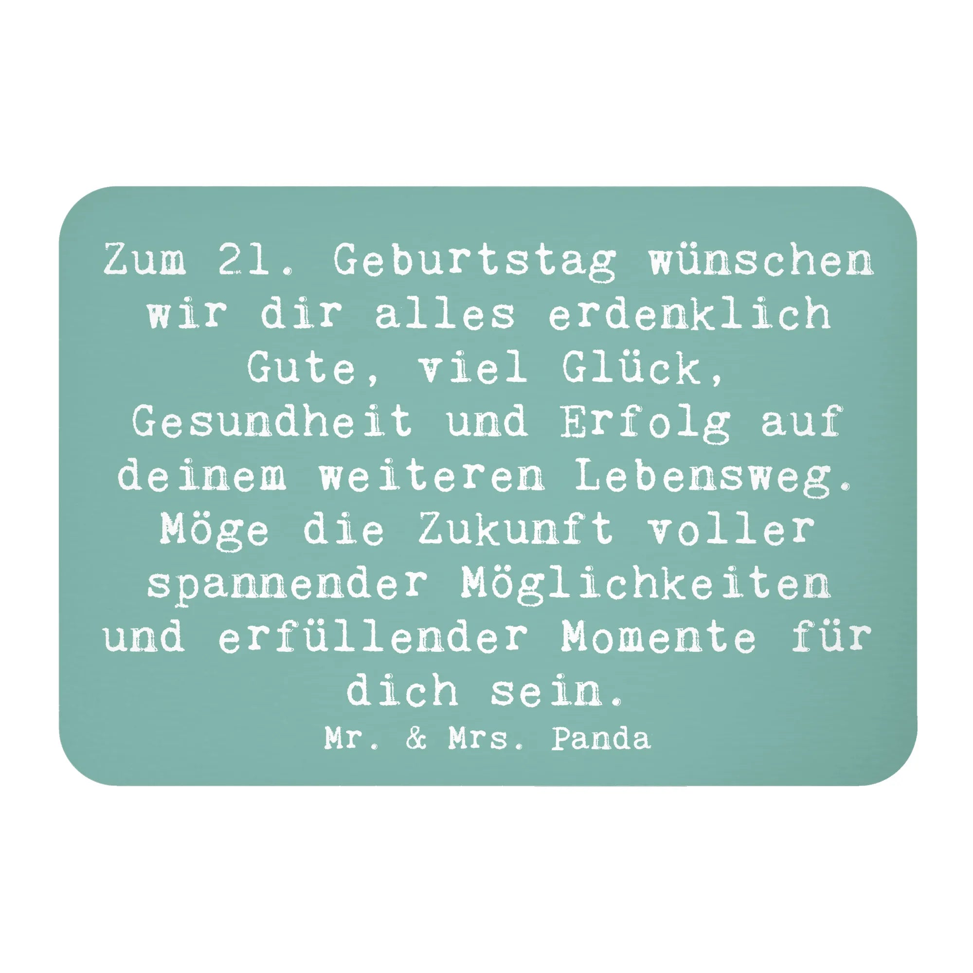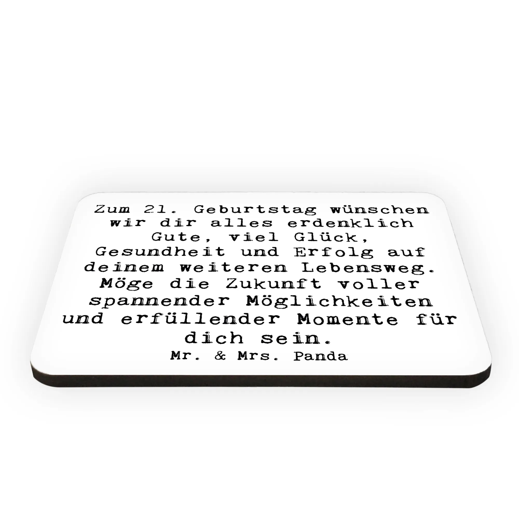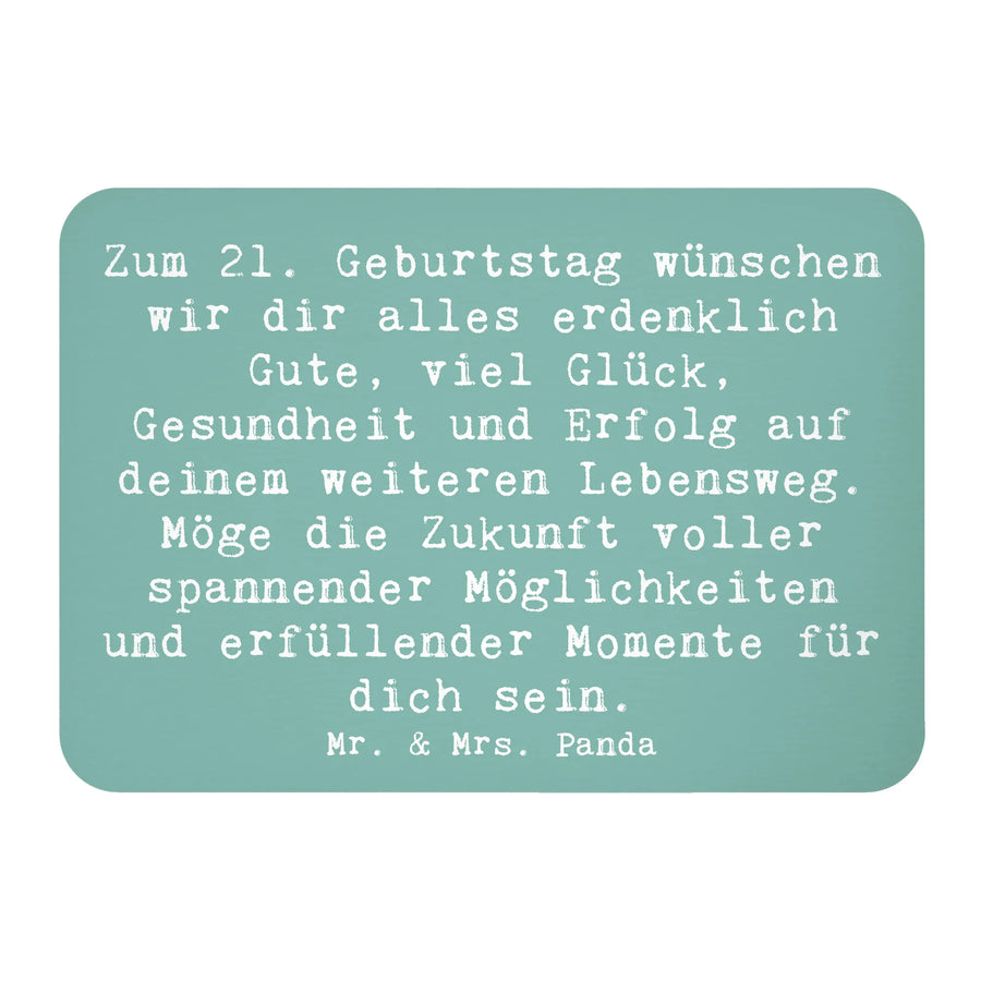 Suchst du nach dem perfekten Geschenk zum 21. Geburtstag? Dann ist der Kühlschrankmagnet von Mr. & Mrs. Panda genau das Richtige! Mit seinem liebevollen Spruch "Zum 21. Geburtstag wünschen wir dir alles erdenklich Gute, viel Glück, Gesundheit und Erfolg auf deinem weiteren Lebensweg. Möge die Zukunft voller spannender Möglichkeiten und erfüllender Momente für dich sein." bringt dieser Magnet Freude und gute Wünsche in jeden Haushalt.