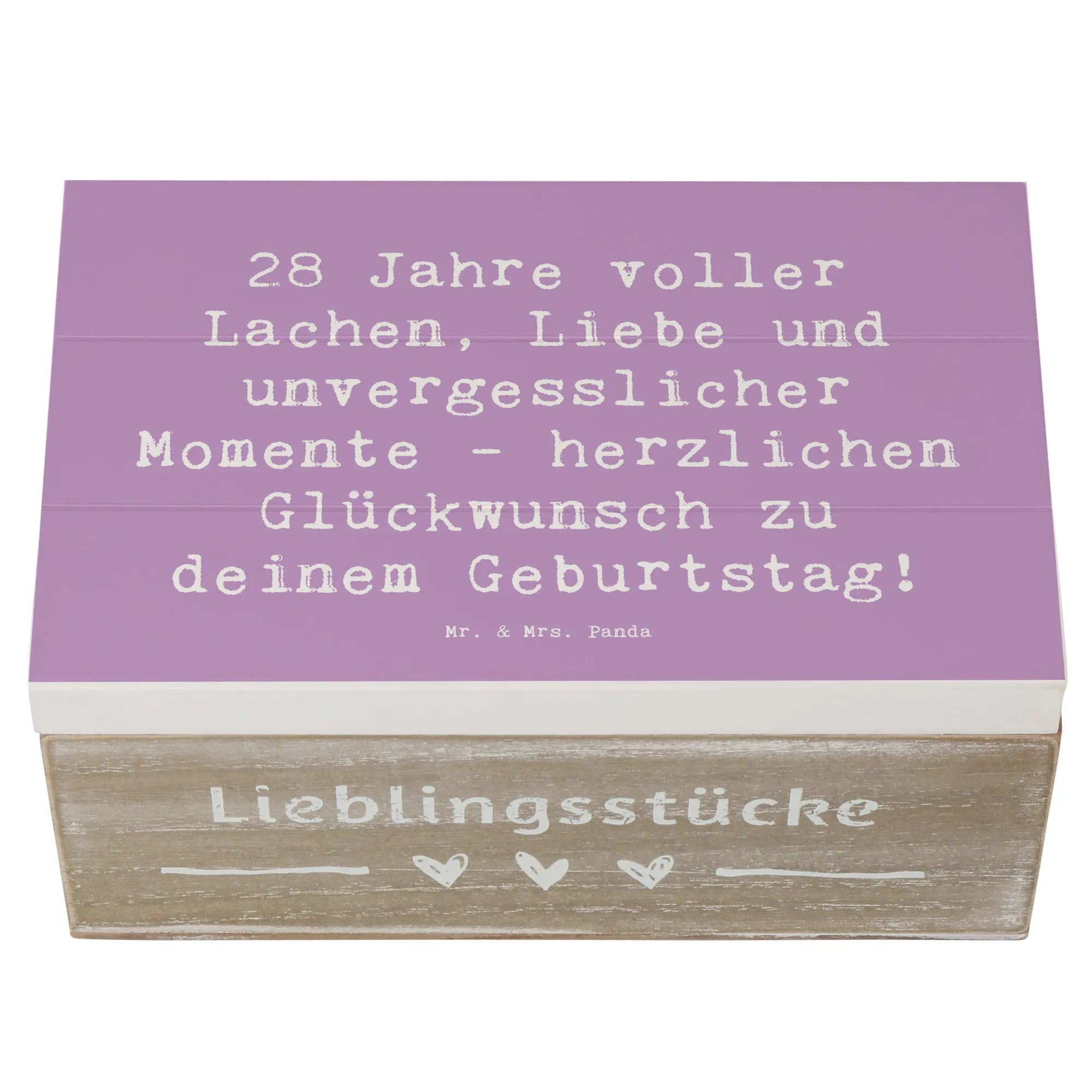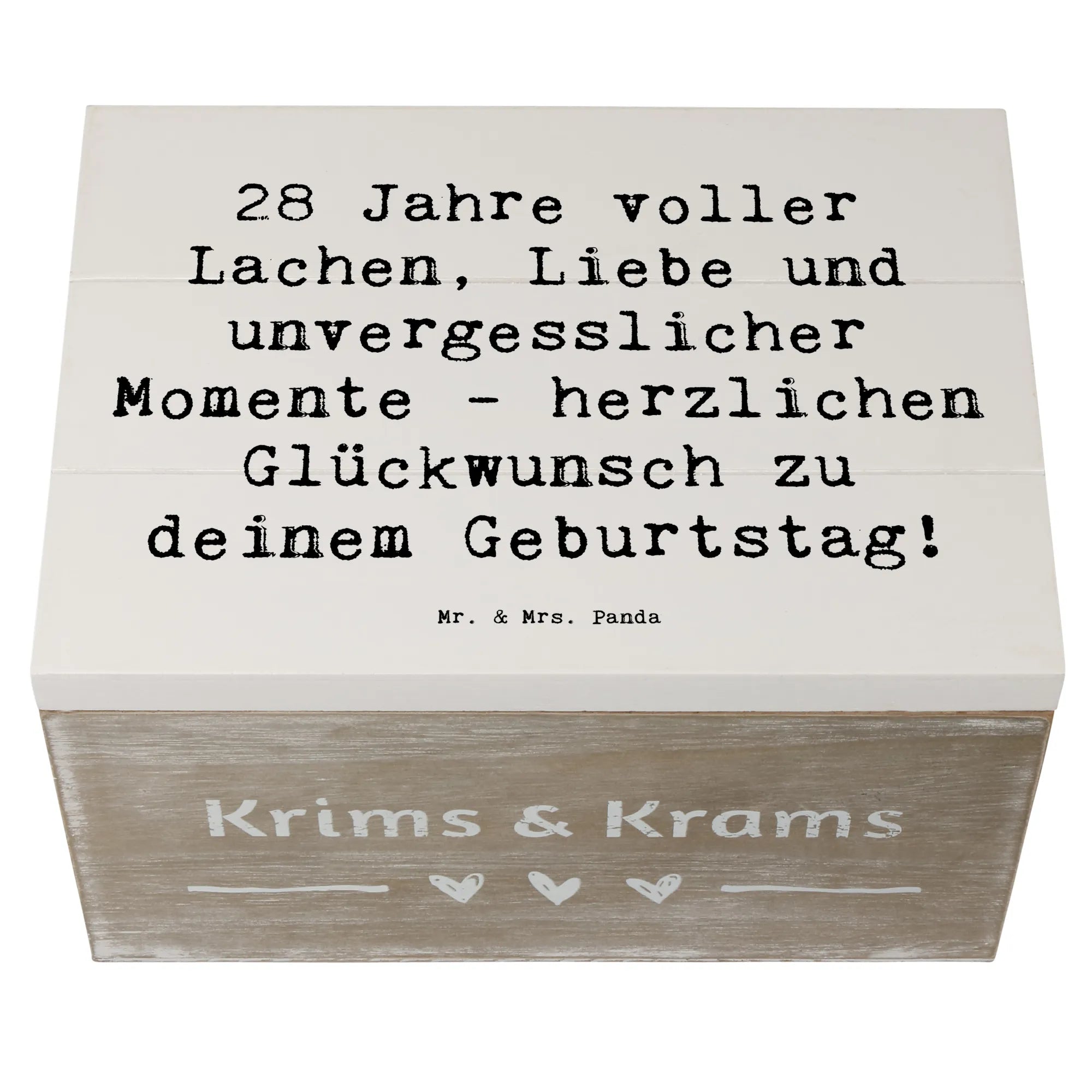 Die wunderschöne Holzkiste von Mr. & Mrs. Panda ist das perfekte Geschenk für deinen 28. Geburtstag! Mit dem liebevollen Spruch "28 Jahre voller Lachen, Liebe und unvergesslicher Momente - herzlichen Glückwunsch zu deinem Geburtstag!" ist diese Erinnerungskiste ein wahrer Schatz für all deine kostbaren Erinnerungen.