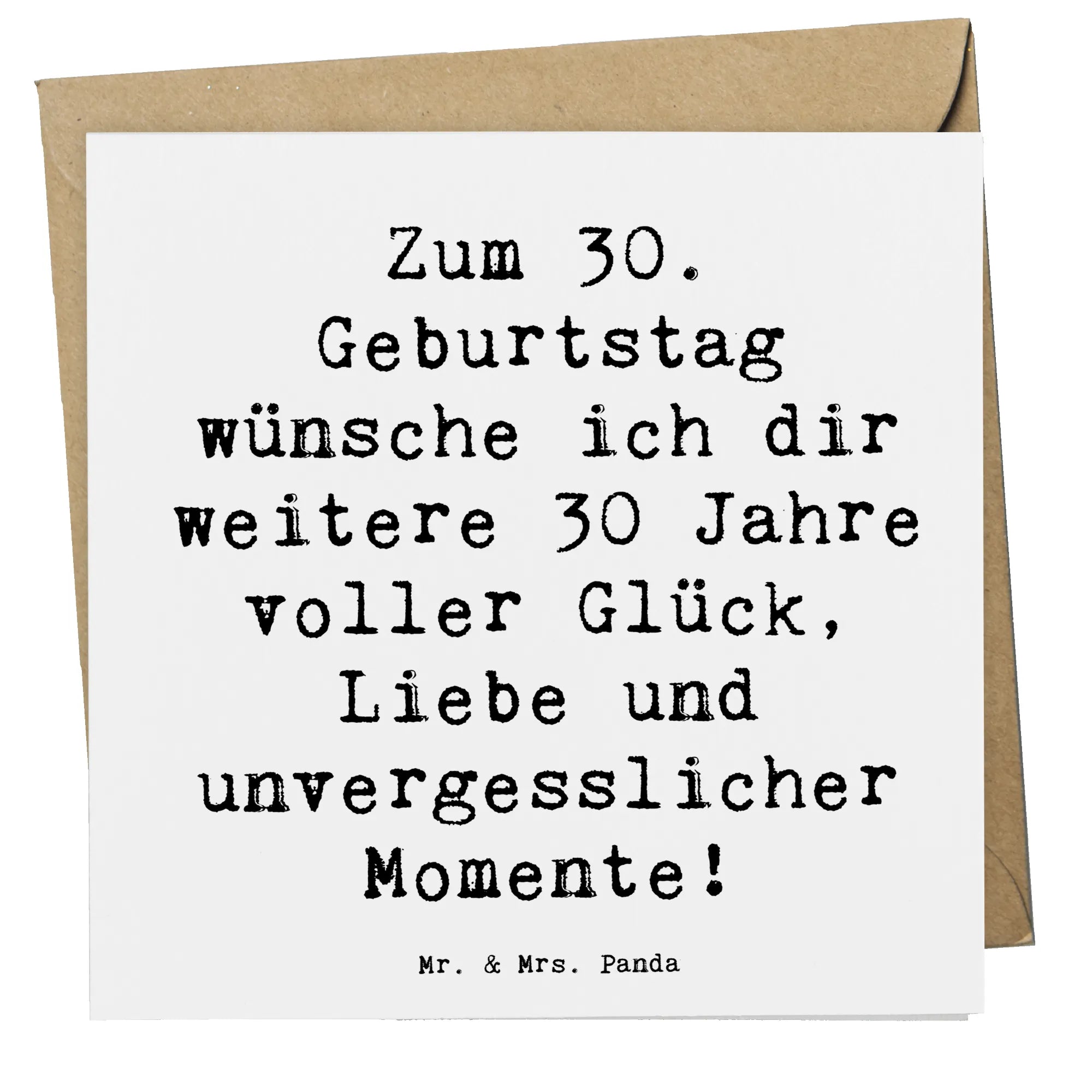 Die edle, hochglänzende Vorderseite besticht durch einen liebevollen Spruch: 'Zum 30. Geburtstag wünsche ich dir weitere 30 Jahre voller Glück, Liebe und unvergesslicher Momente!' Hinterlasse damit eine persönliche Nachricht auf der blanko Innenseite und mache diesen Tag noch besonderer.