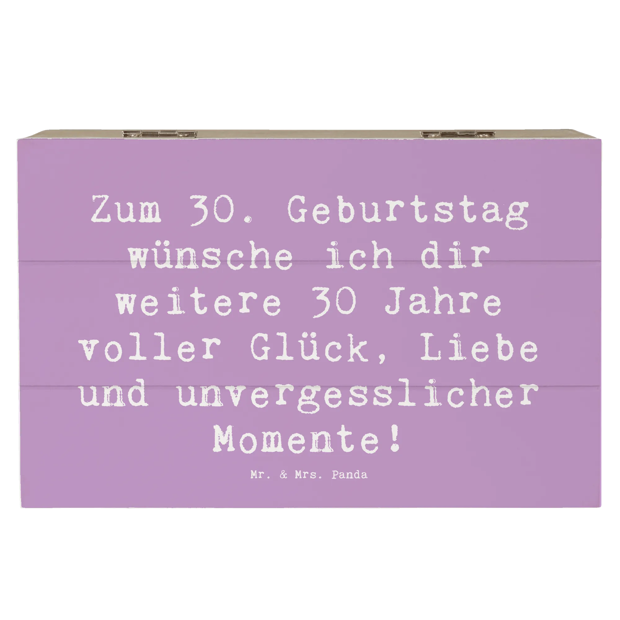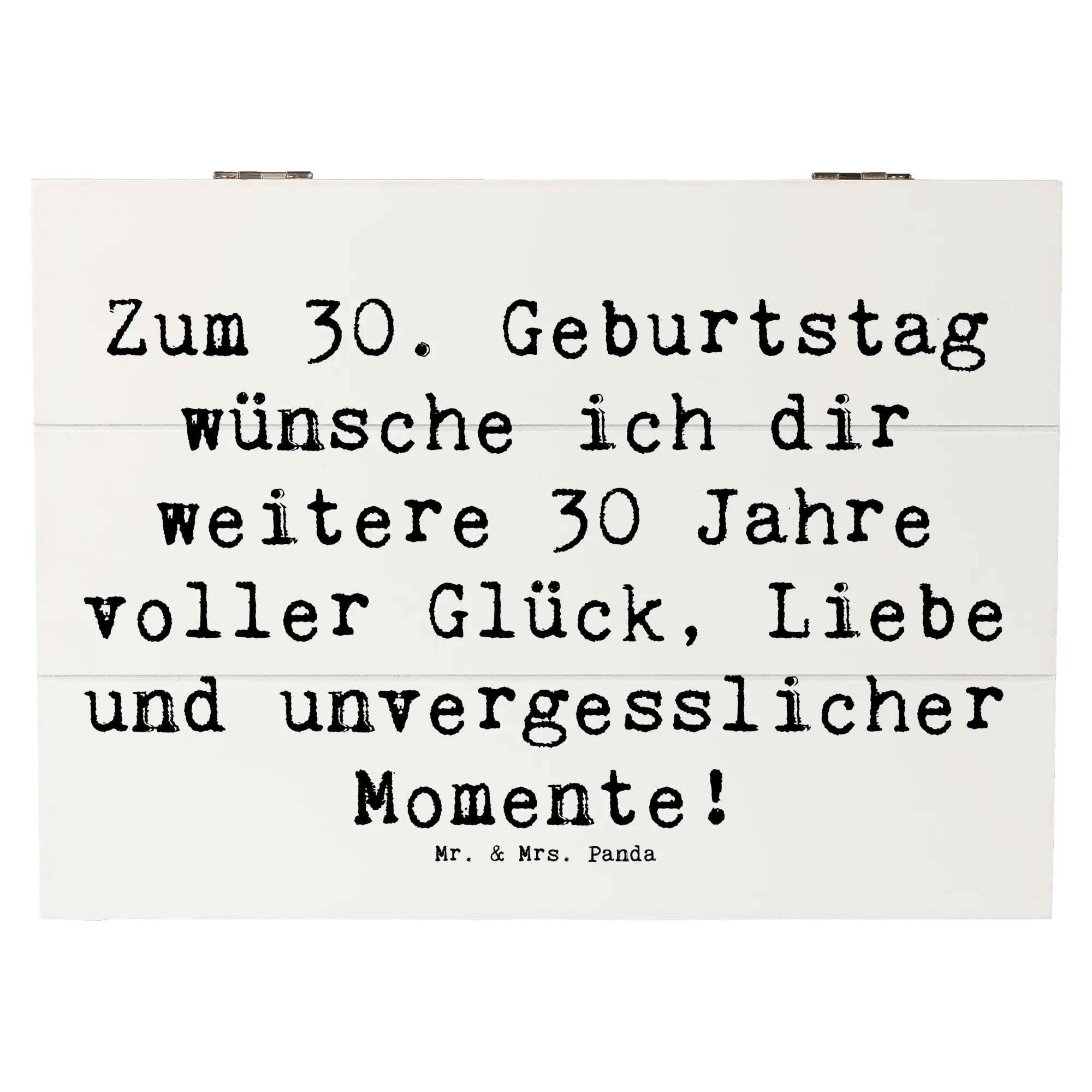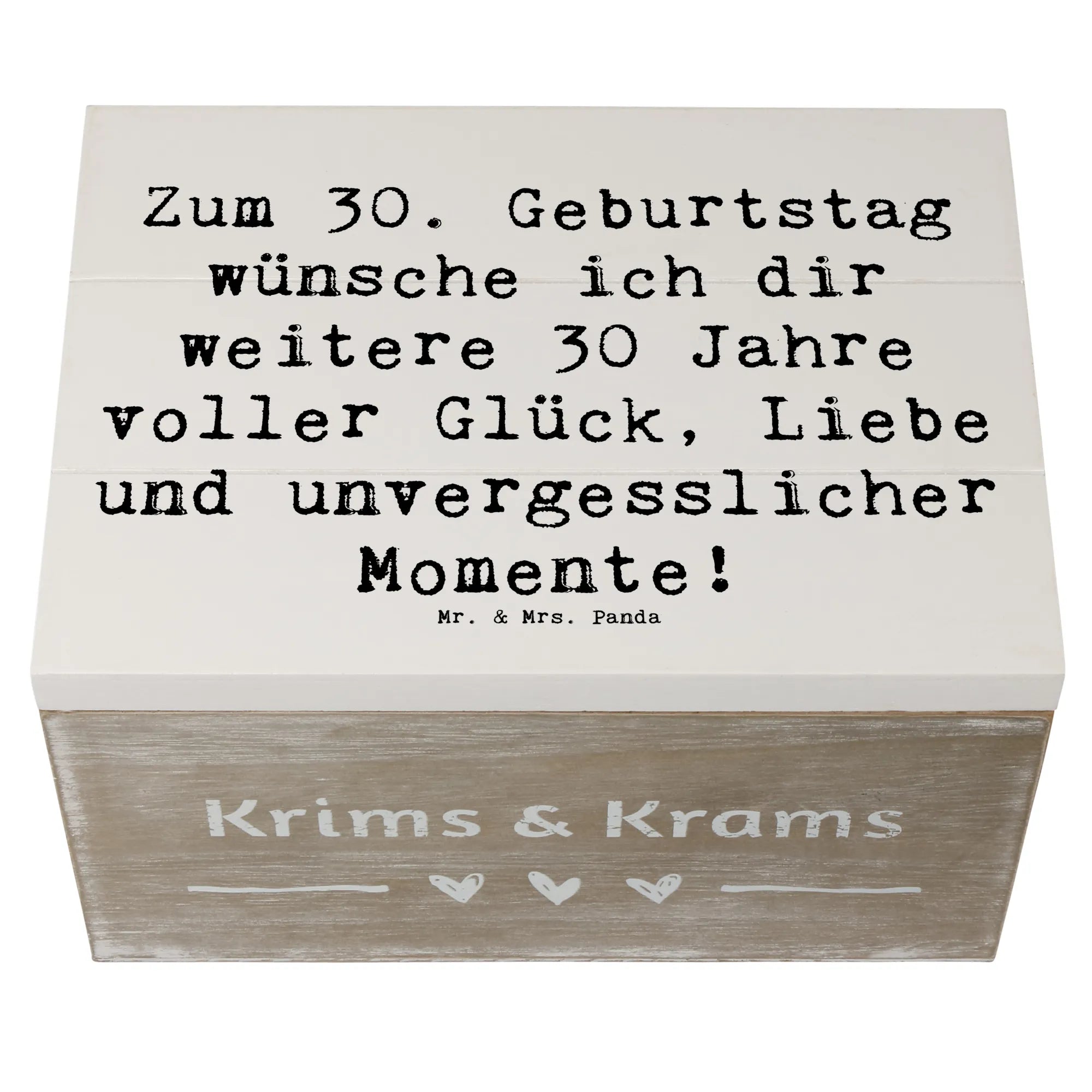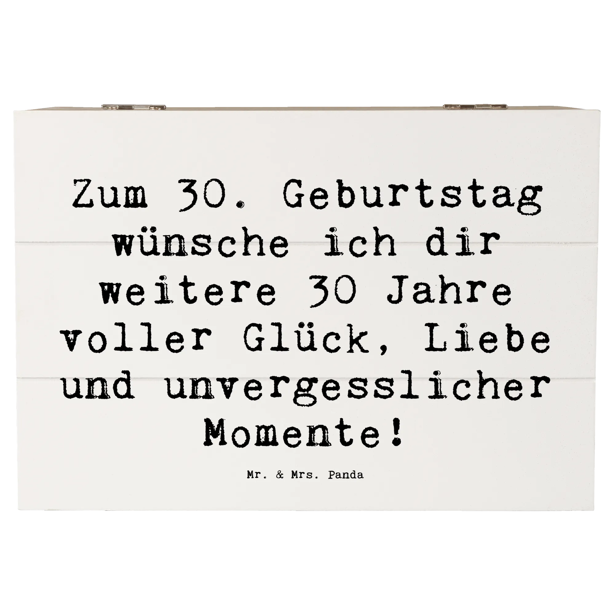Die wunderschöne Holzkiste von Mr. & Mrs. Panda ist das perfekte Geschenk zum 30. Geburtstag! Bedruckt mit dem liebevollen Spruch: "Zum 30. Geburtstag wünsche ich dir weitere 30 Jahre voller Glück, Liebe und unvergesslicher Momente!" eignet sich diese Kiste hervorragend als Aufbewahrungsort für all deine Schätze. Ob Erinnerungen an die Kindheit, Fotos von besonderen Momenten oder als Erinnerungskiste für festliche Anlässe wie Kommunion oder Konfirmation – diese Kiste bewahrt alles sicher und stilvoll auf.