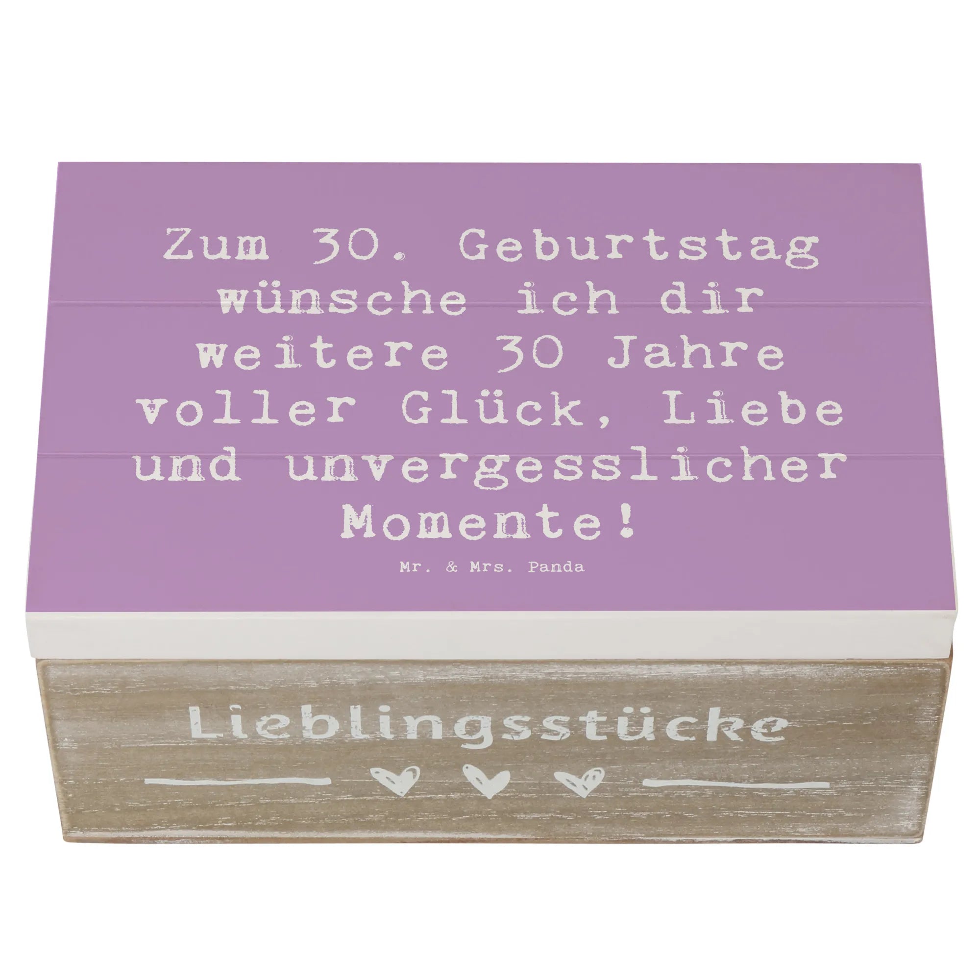 Die wunderschöne Holzkiste von Mr. & Mrs. Panda ist das perfekte Geschenk zum 30. Geburtstag! Mit dem liebevoll gestalteten Spruch "Zum 30. Geburtstag wünsche ich dir weitere 30 Jahre voller Glück, Liebe und unvergesslicher Momente!" ist diese Kiste eine ganz besondere Aufbewahrungsbox für all die wertvollen Erinnerungen, die im Laufe der Jahre gesammelt werden. In einer Größe von 25 x 18 cm ist sie groß genug, um Fotos, kleine Geschenke oder andere Schätze sicher zu verwahren. Die robuste Holzfaser sorgt dafür, dass die Kiste stabil und langlebig ist, während die Einschlagscharniere ein einfaches Öffnen und Schließen ermöglichen. Egal, ob für eine Feier oder einfach als stilvolle Dekoration – diese Erinnerungskiste zieht alle Blicke auf sich.