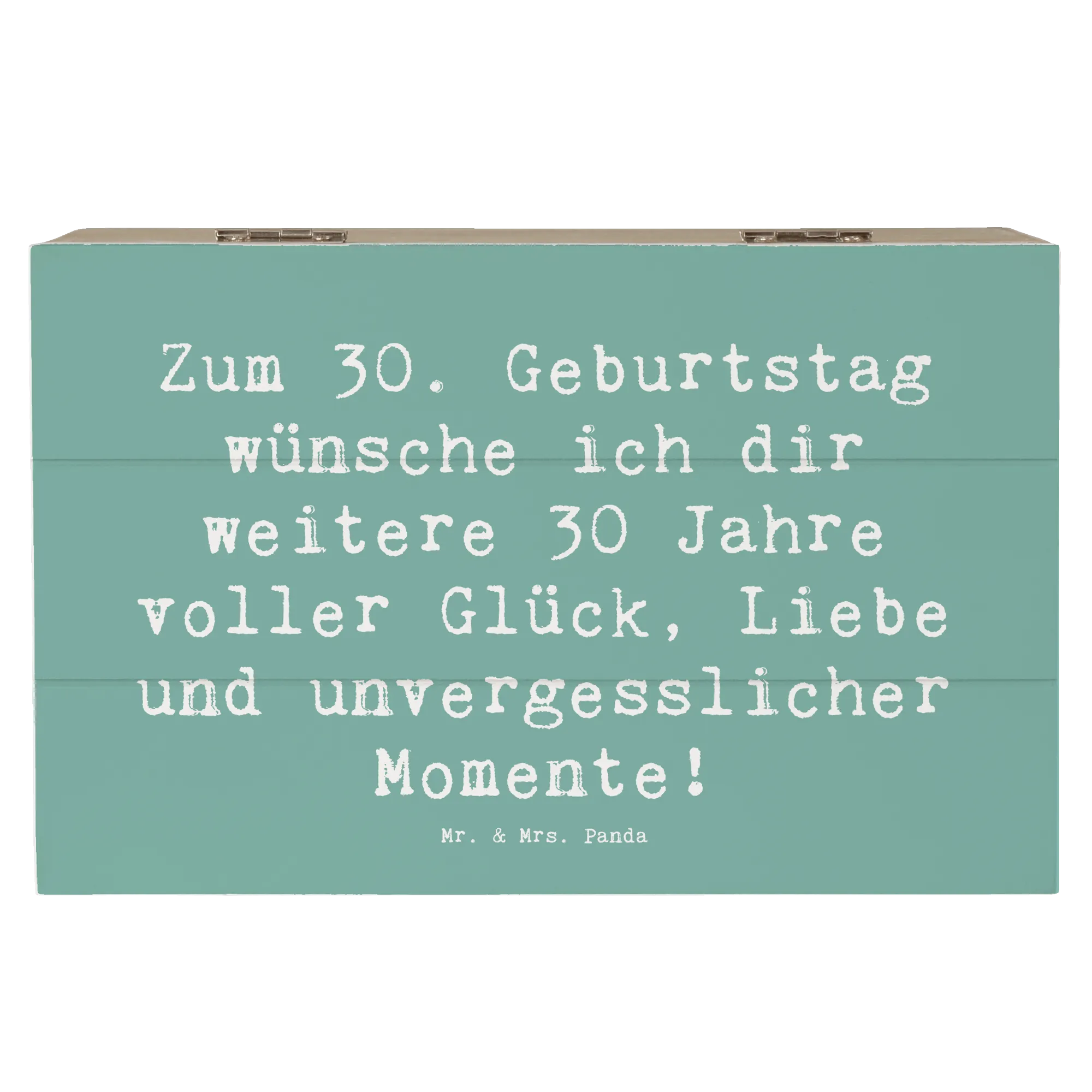 Verschenke unvergessliche Momente und mache den 30. Geburtstag zu einem besonderen Erlebnis mit dieser einzigartigen Holzkiste! Sie ist nicht abschließbar, aber darauf kommt es nicht an – das echte Leben wird in dieser Kiste aufbewahrt! Pflege die Kiste, indem du sie vorsichtig mit einem feuchten Tuch abwischst und sie wird dir lange Freude bereiten. Die Holzkiste von Mr. & Mrs. Panda ist das ideale Geschenk, das von Herzen kommt und einen bleibenden Eindruck hinterlässt.