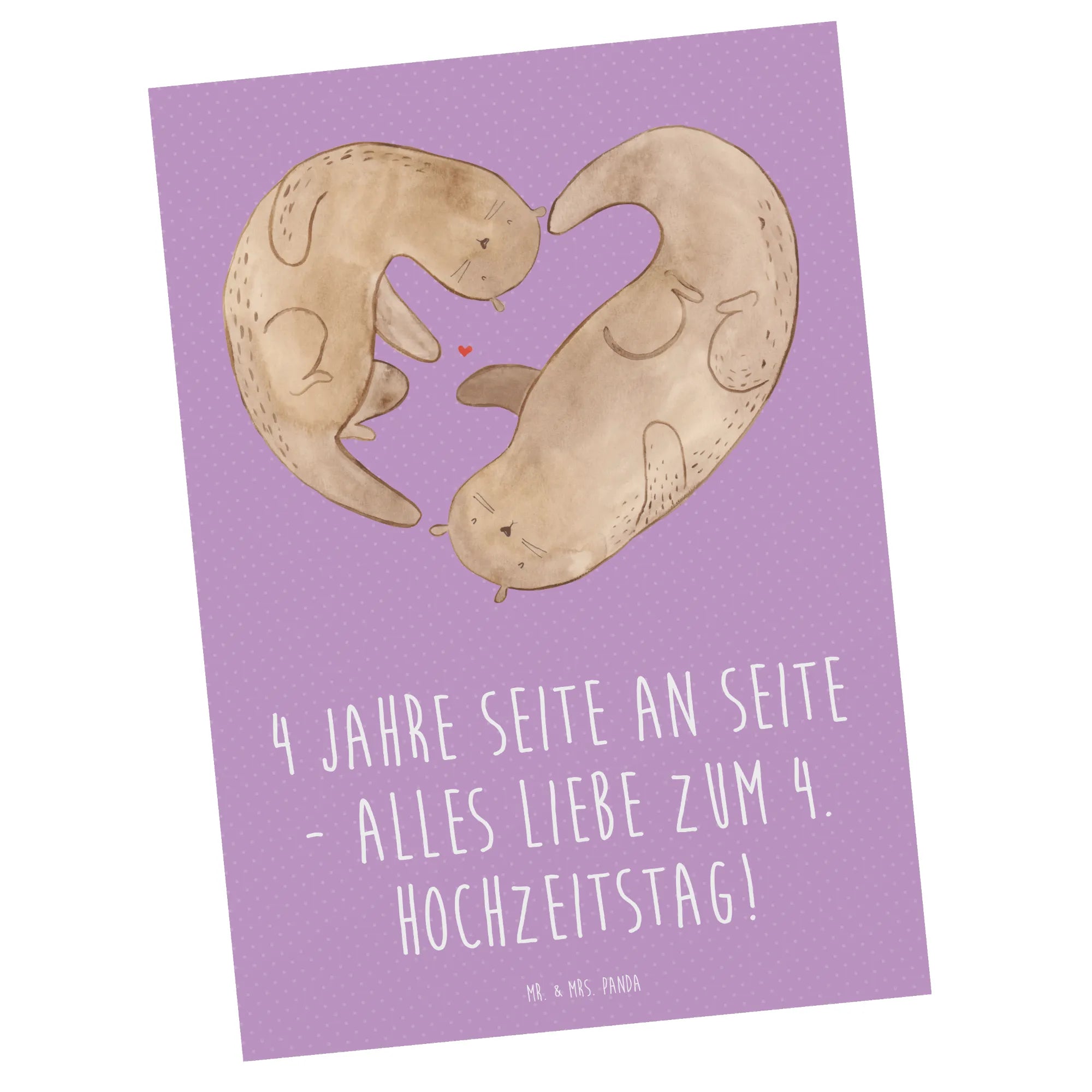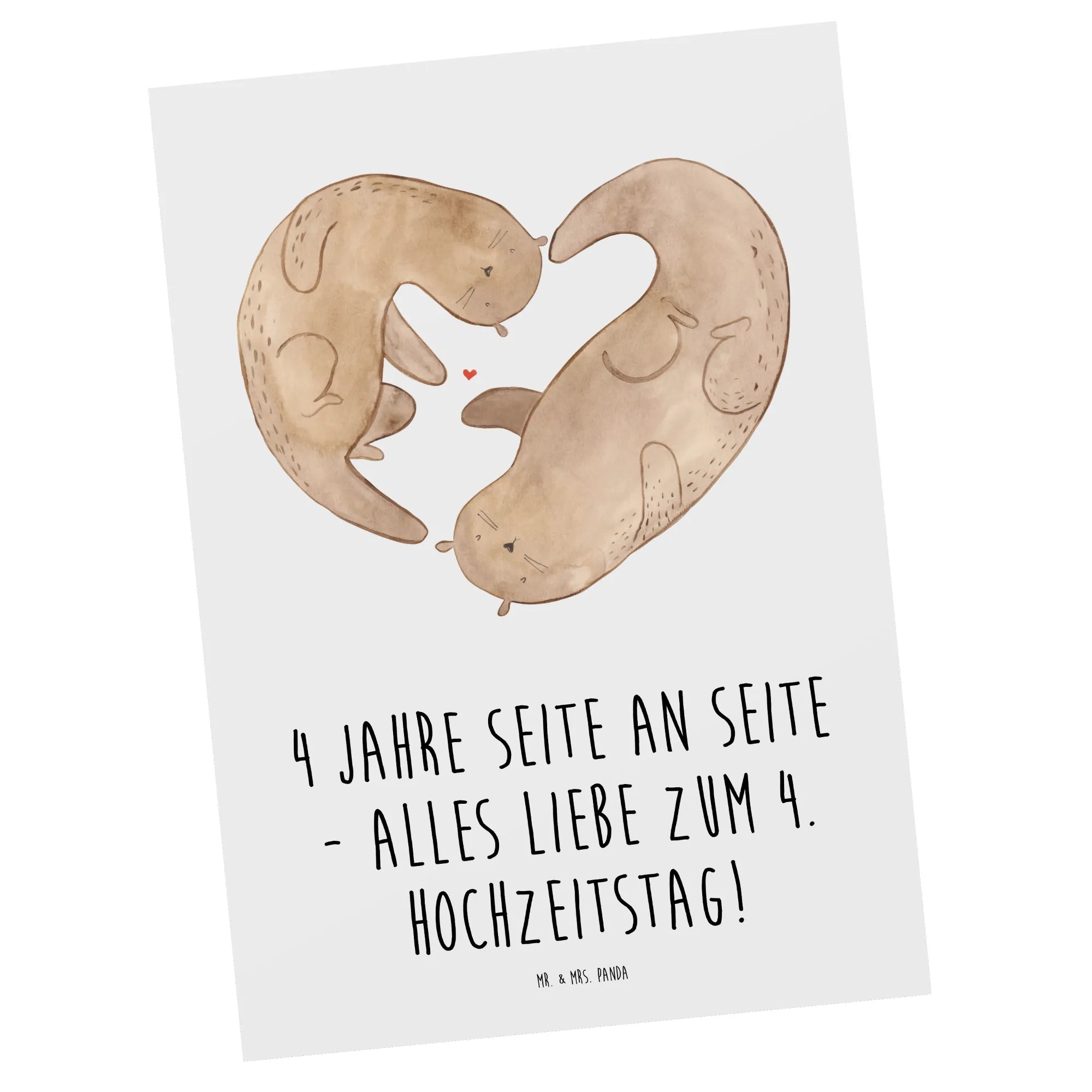 Postkarte 4. Hochzeitstag Seidenhochzeit – Mr. & Mrs. Panda