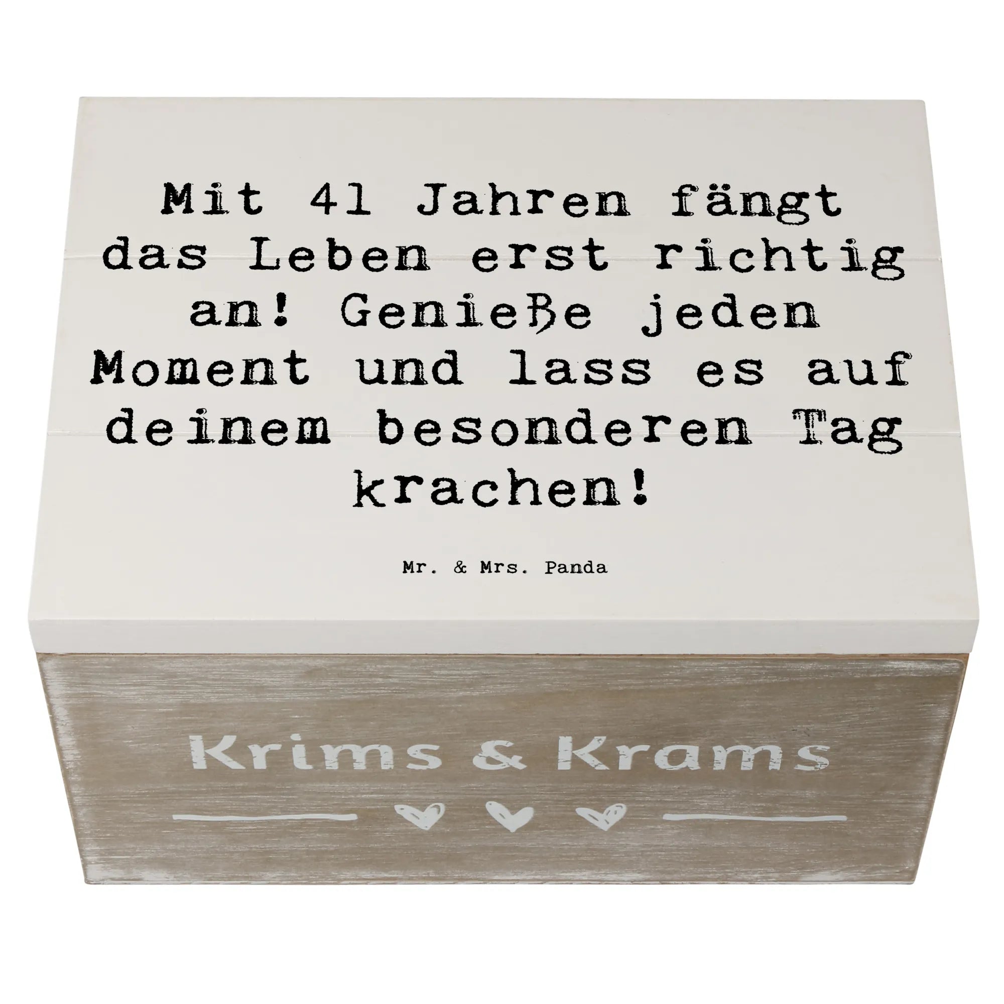 Die wunderschöne Holzkiste von Mr. & Mrs. Panda ist das perfekte Geschenk für alle, die ihren 41. Geburtstag gebührend feiern wollen! Mit dem liebevollen Spruch 'Mit 41 Jahren fängt das Leben erst richtig an! Genieße jeden Moment und lass es auf deinem besonderen Tag krachen!' bringt diese Kiste nicht nur Freude und Glück, sondern auch eine besondere Botschaft des Lebens.