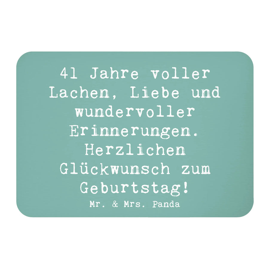 Suchst du das perfekte Geschenk zum 41. Geburtstag? Dann ist unser Kühlschrankmagnet von Mr. & Mrs. Panda genau das Richtige! Er trägt den liebevollen Spruch "41 Jahre voller Lachen, Liebe und wundervoller Erinnerungen. Herzlichen Glückwunsch zum Geburtstag!" und eignet sich bestens, um diesen besonderen Tag unvergesslich zu machen.