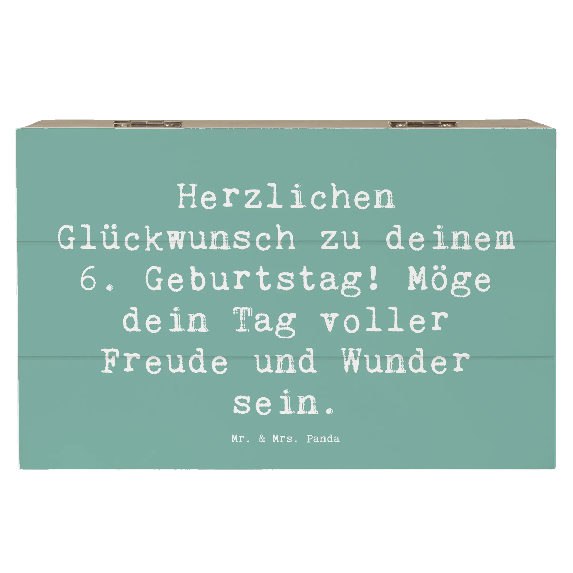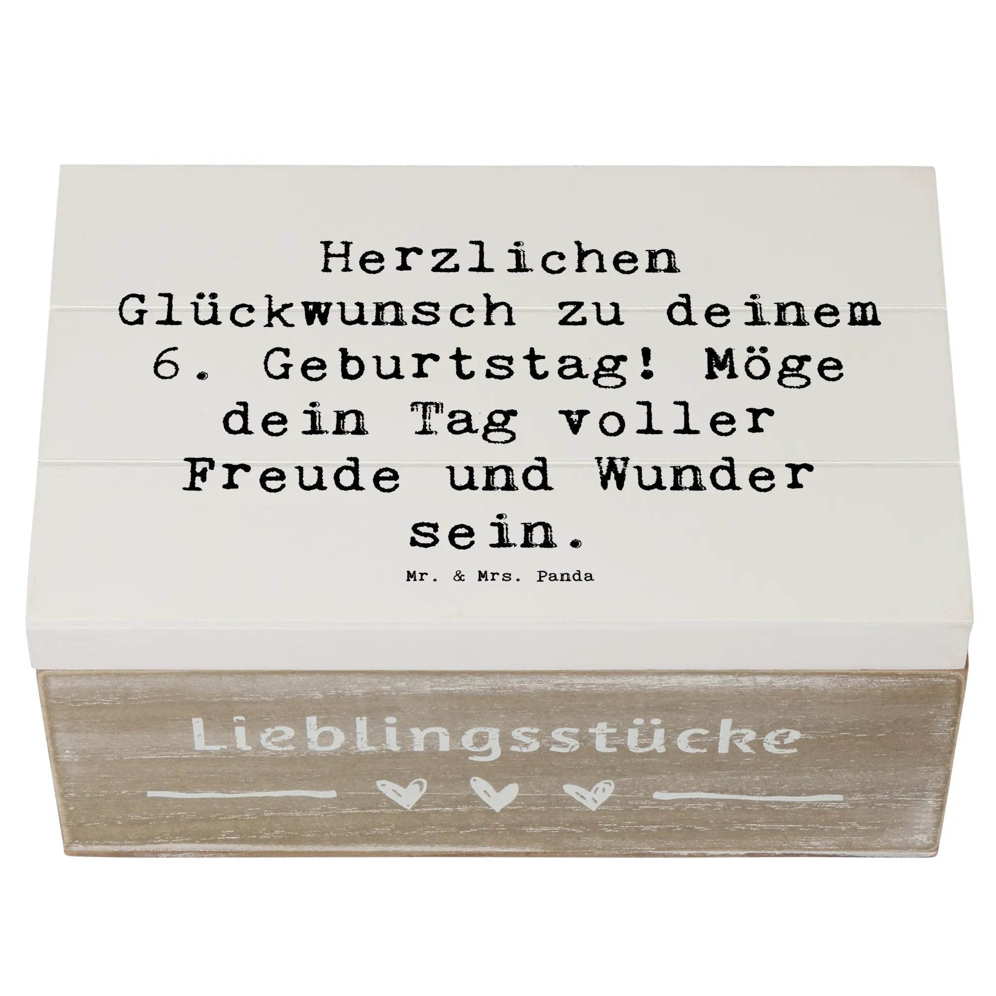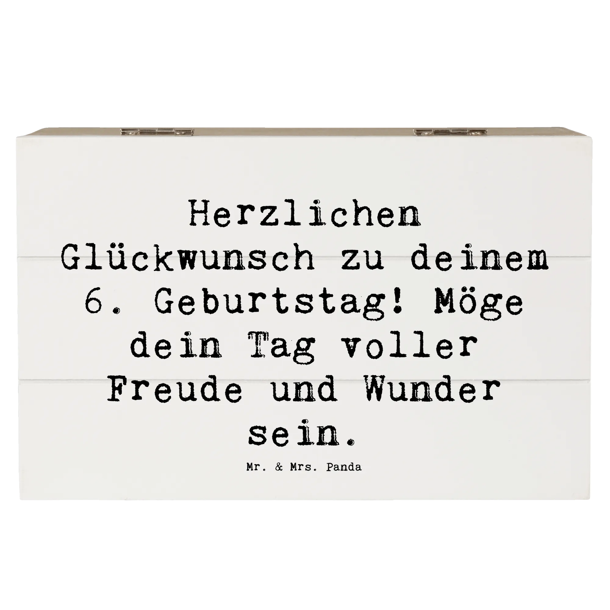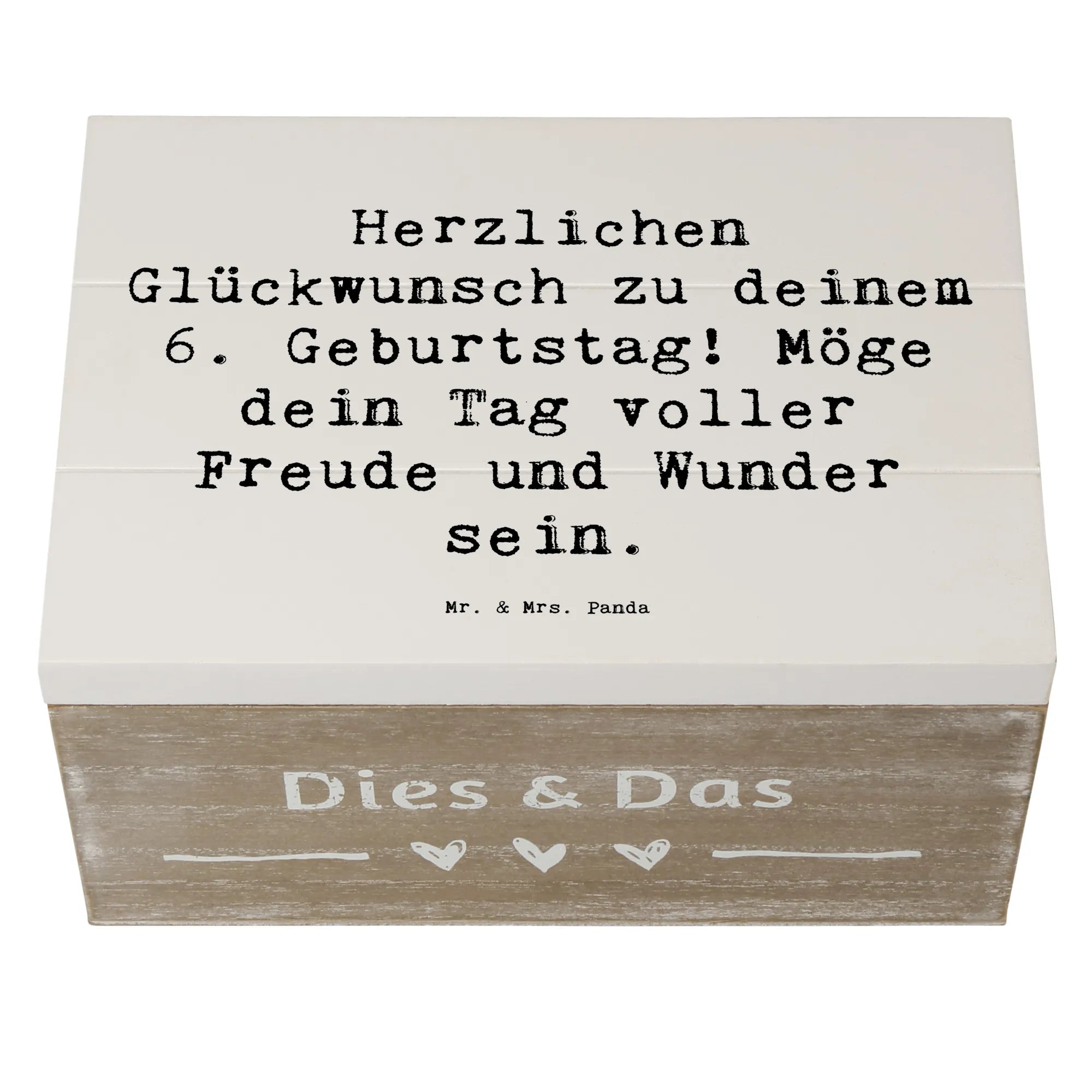 Die wunderschöne Holzkiste von Mr. & Mrs. Panda ist das perfekte Geschenk zum 6. Geburtstag! Mit dem liebevollen Spruch 'Herzlichen Glückwunsch zu deinem 6. Geburtstag! Möge dein Tag voller Freude und Wunder sein.' verzaubert diese Kiste nicht nur das Geburtstagskind, sondern auch alle Gäste.