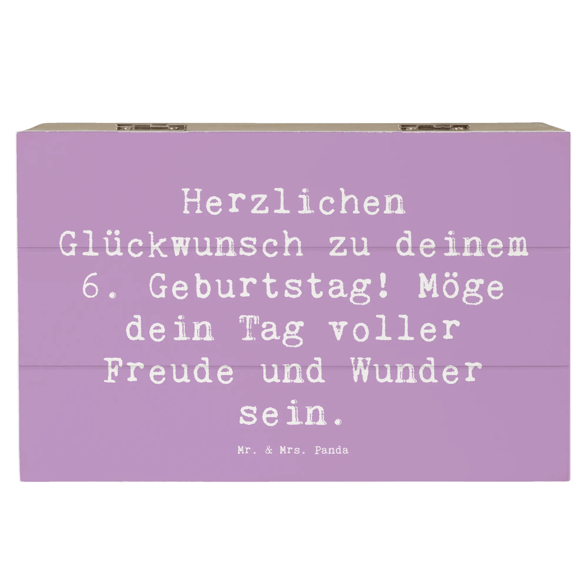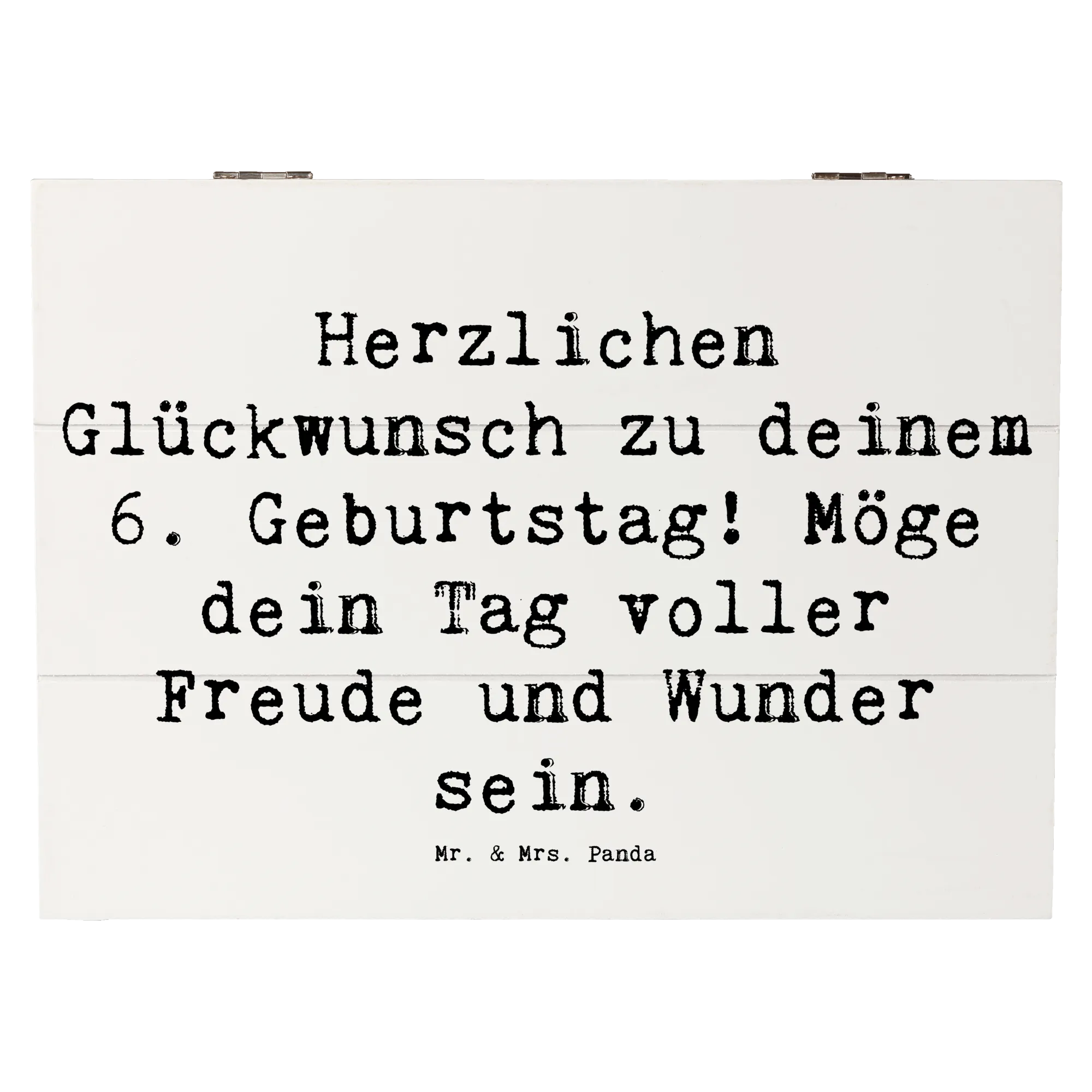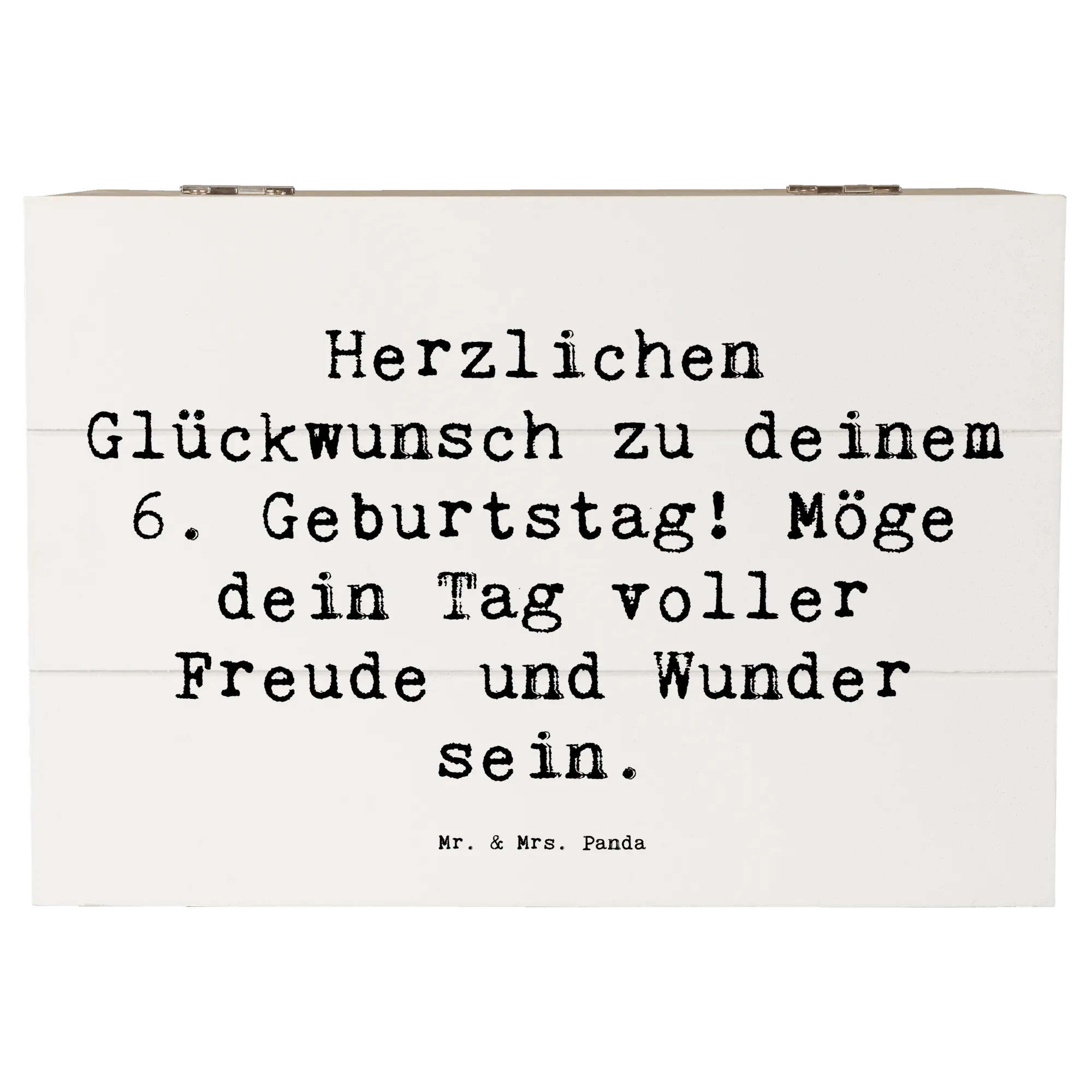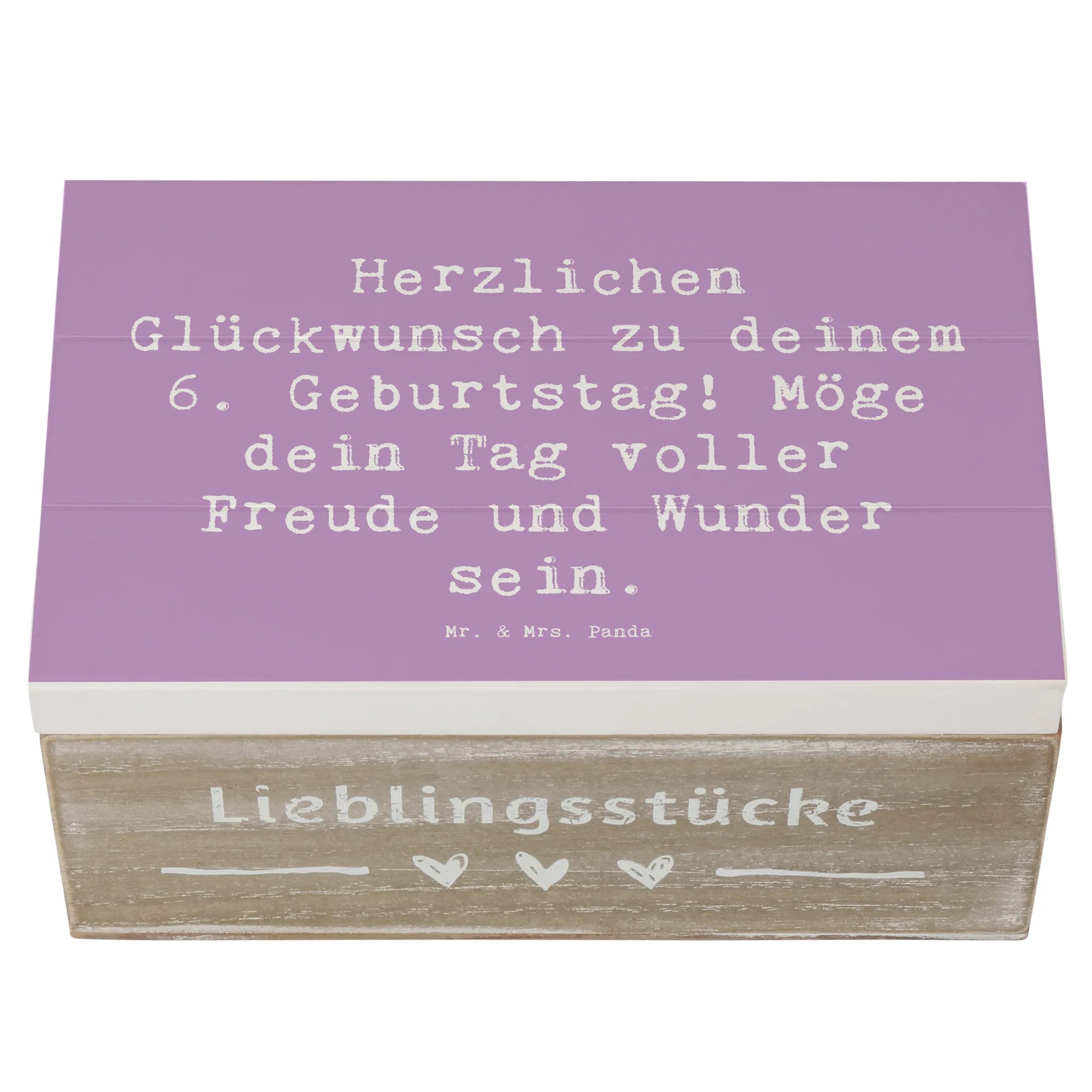 Die wunderschöne Holzkiste von Mr. & Mrs. Panda ist das perfekte Geschenk zum 6. Geburtstag! Mit dem liebevollen Spruch 'Herzlichen Glückwunsch zu deinem 6. Geburtstag! Möge dein Tag voller Freude und Wunder sein.' verzaubert diese Kiste nicht nur das Geburtstagskind, sondern auch alle Gäste.