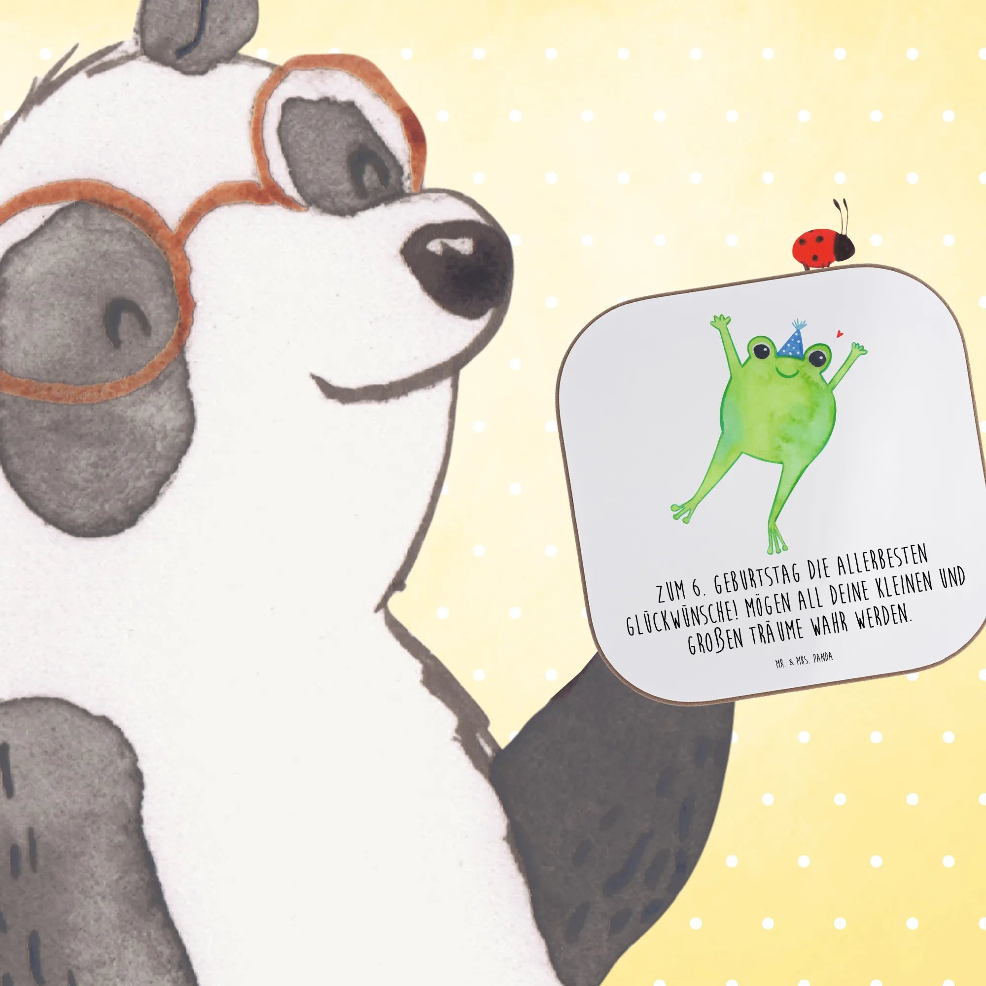 Untersetzer 6. Geburtstag Glückwünsche – Mr. & Mrs. Panda