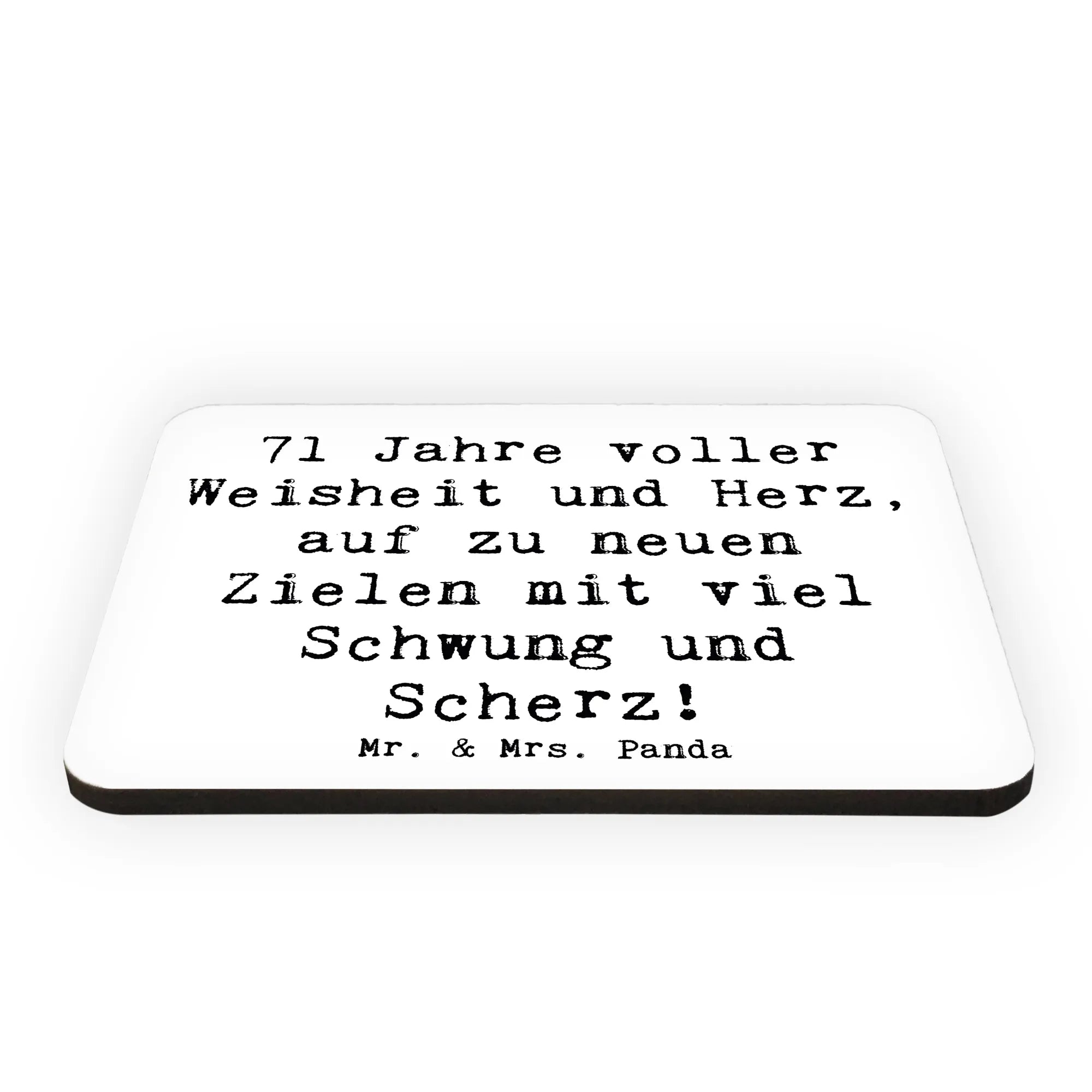 Feiere den 71. Geburtstag mit einem ganz besonderen Magnet von Mr. & Mrs. Panda. Dieser Kühlschrankmagnet ist nicht nur ein praktisches Utensil, sondern auch ein liebevolles Geschenk, das jedem Geburtstagskind ein Lächeln ins Gesicht zaubert. Mit dem Spruch "71 Jahre voller Weisheit und Herz, auf zu neuen Zielen mit viel Schwung und Scherz!" bringt er Freude und Lebensfreude in jede Küche.