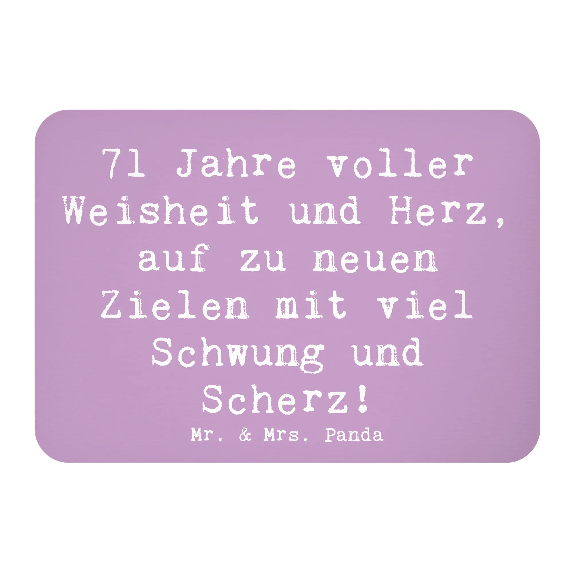 Der Kühlschrankmagnet "71 Jahre voller Weisheit und Herz" von Mr. & Mrs. Panda ist das perfekte Geschenk für den 71. Geburtstag. Er bringt nicht nur Farbe und Stil in deine Küche, sondern auch eine besondere Botschaft, die jedem ein Lächeln ins Gesicht zaubert. Dieses liebevoll gestaltete Magnetmotiv vereint die Lebensfreude und die schönen Erinnerungen, die ein Geburtstag mit sich bringt.