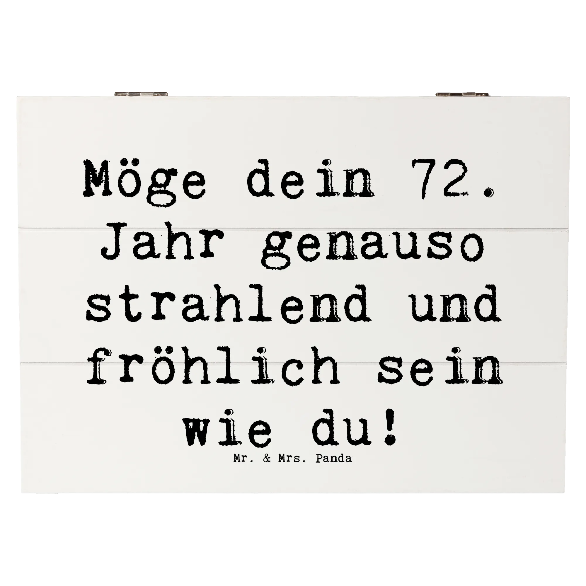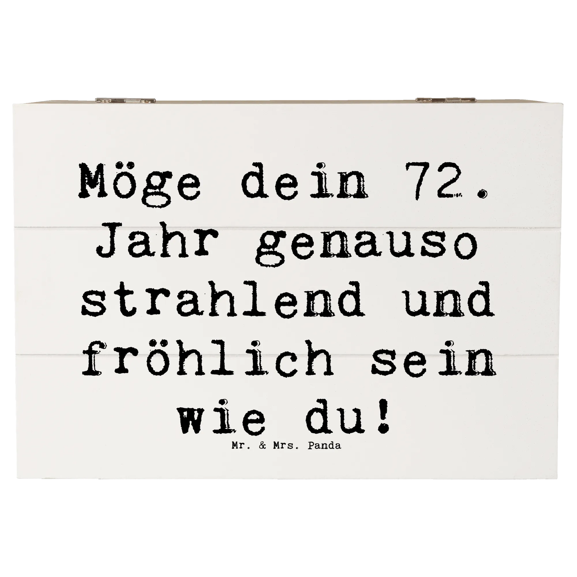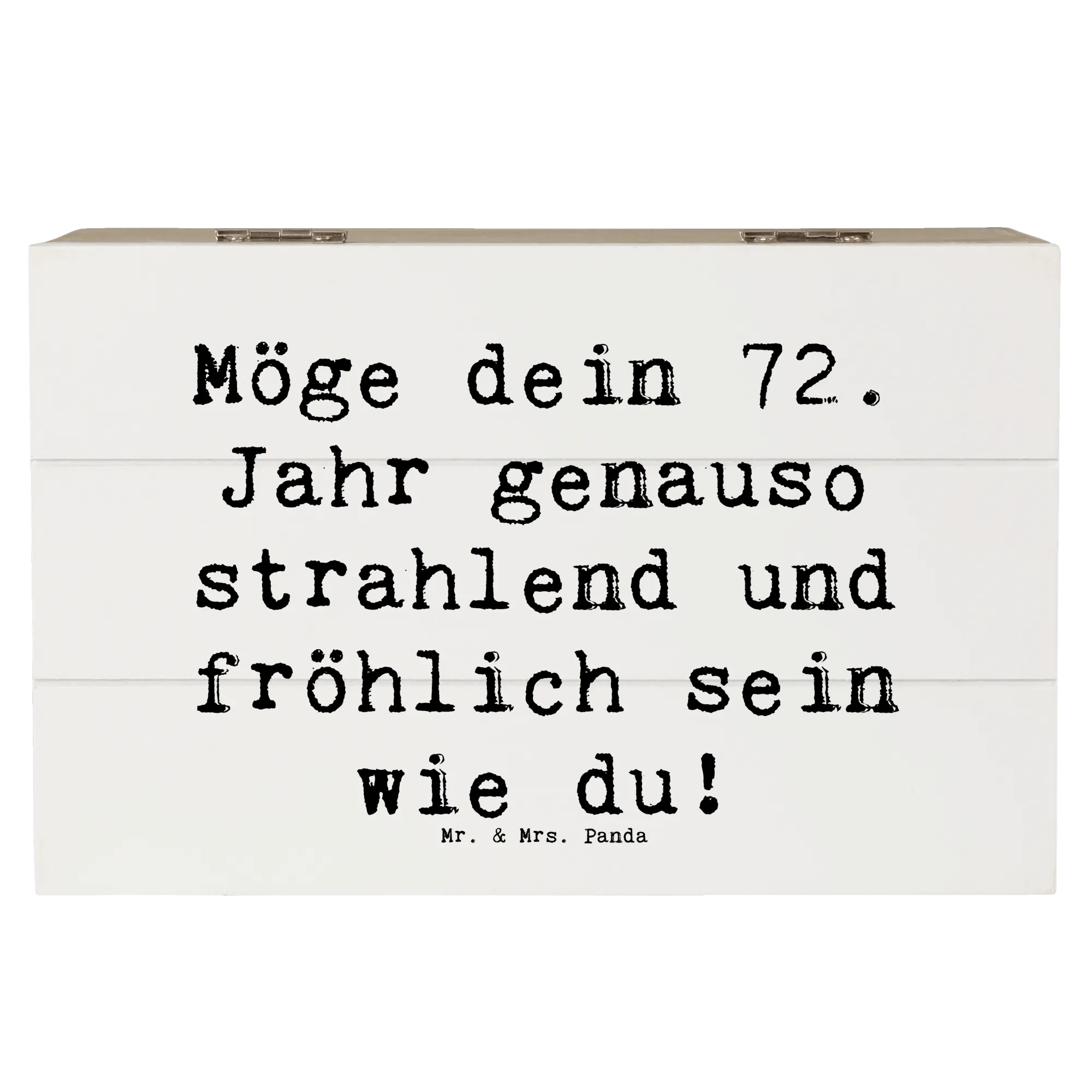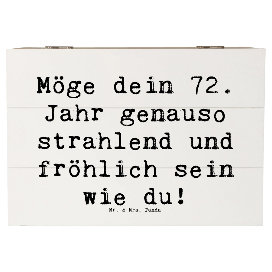Die wunderschöne Holzkiste von Mr. & Mrs. Panda ist der perfekte Begleiter zum 72. Geburtstag. Der Spruch "Möge dein 72. Jahr genauso strahlend und fröhlich sein wie du!" ziert die Kiste und bringt Freude und Glück für den Beschenkten.