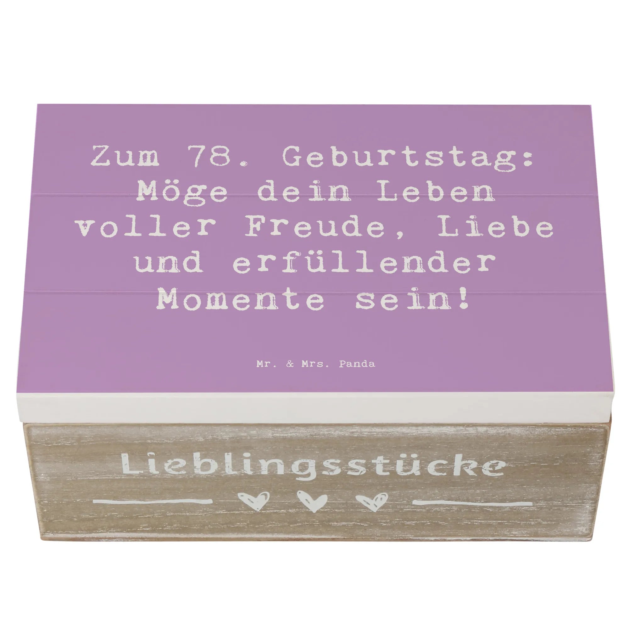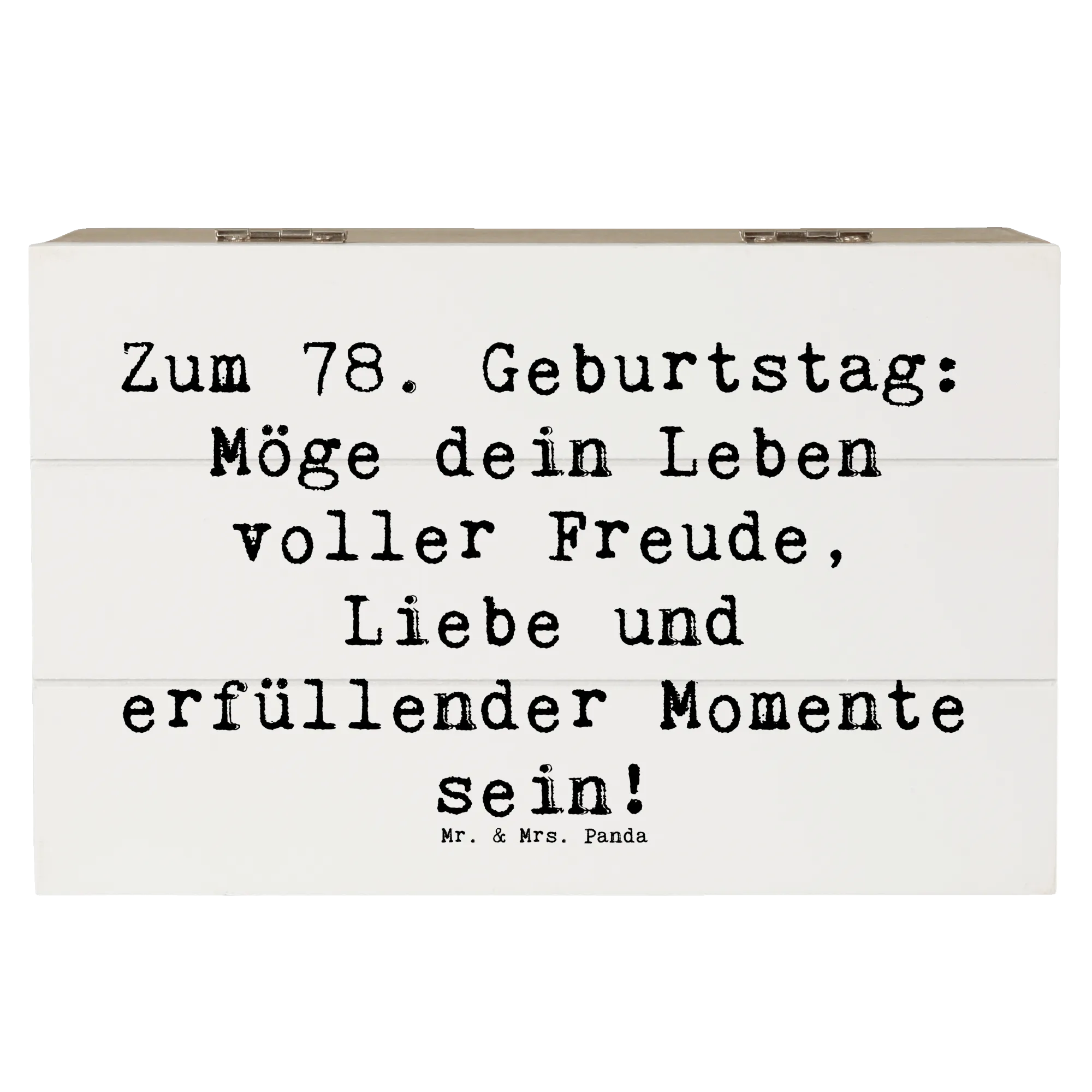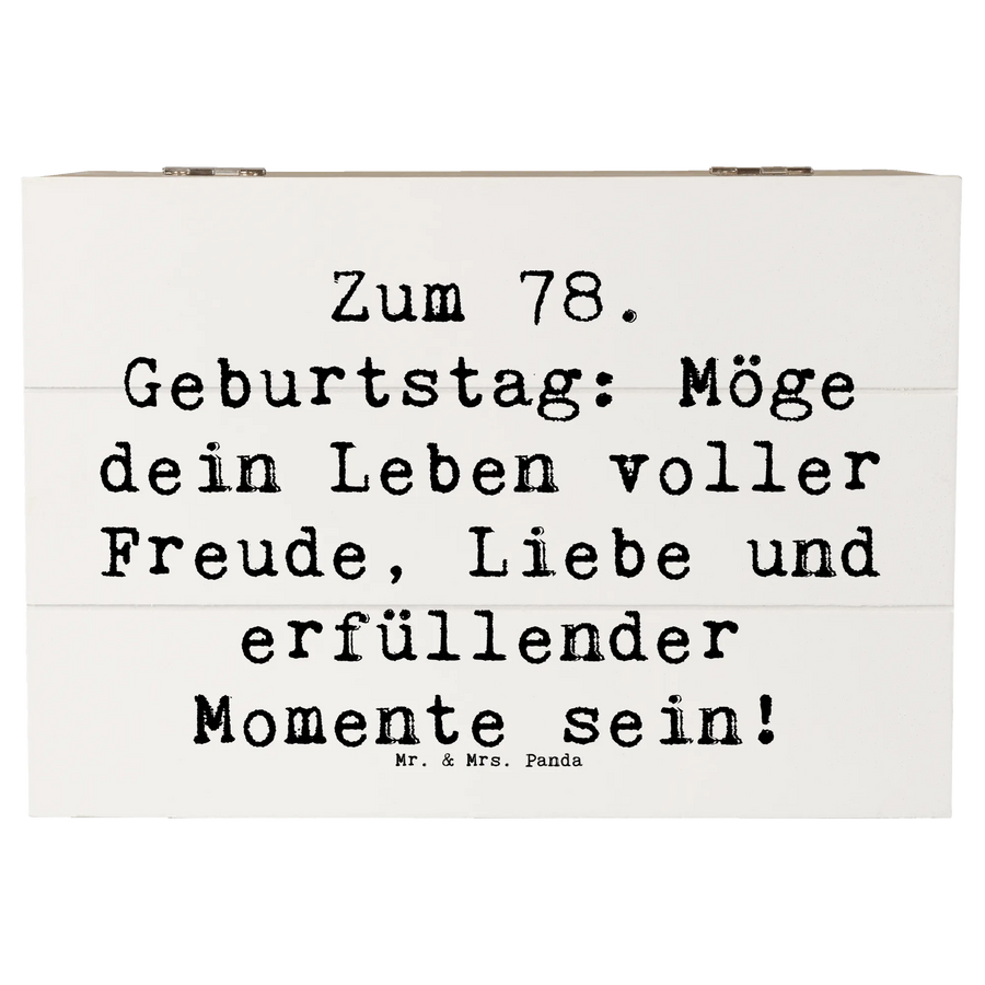 Die wunderschöne Holzkiste von Mr. & Mrs. Panda ist das perfekte Geschenk für den 78. Geburtstag! Mit dem liebevollen Spruch: "Zum 78. Geburtstag: Möge dein Leben voller Freude, Liebe und erfüllender Momente sein!" bringt sie Freude und Glücklichsein.