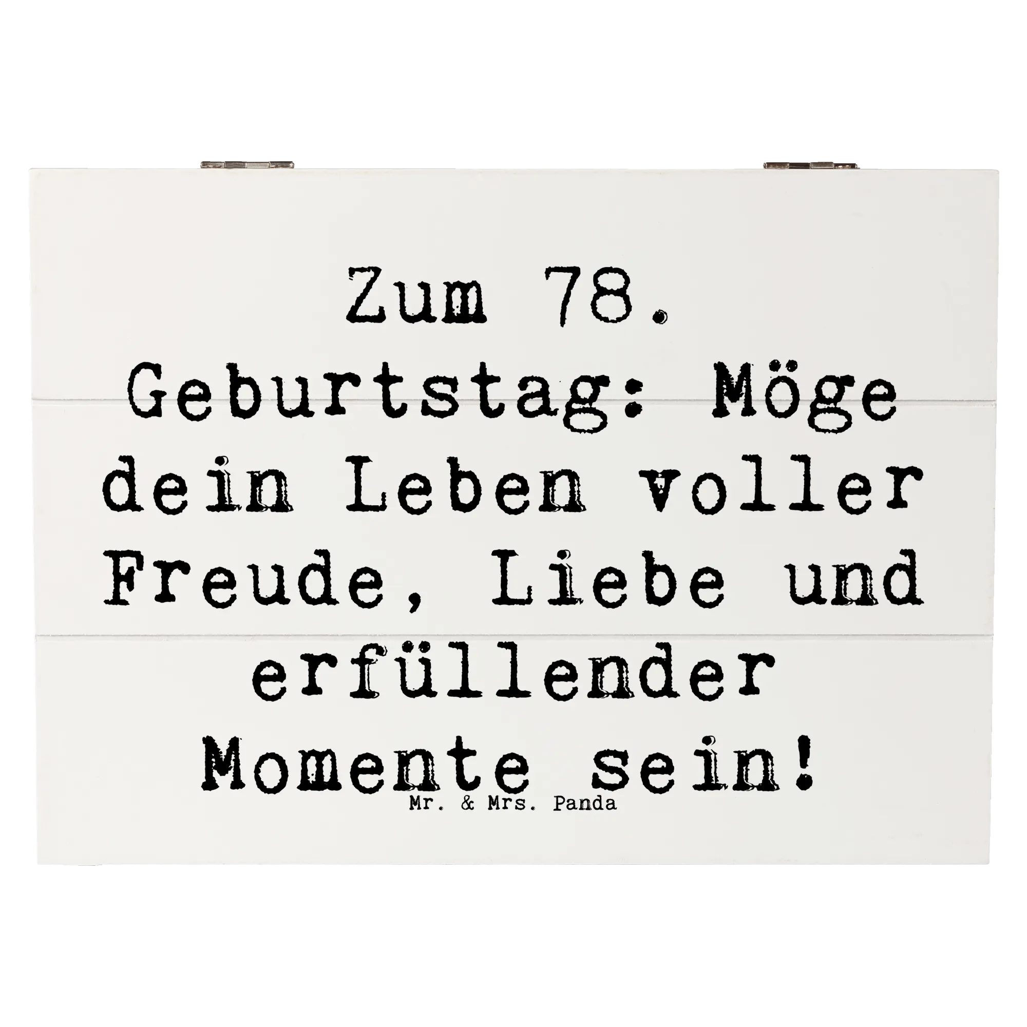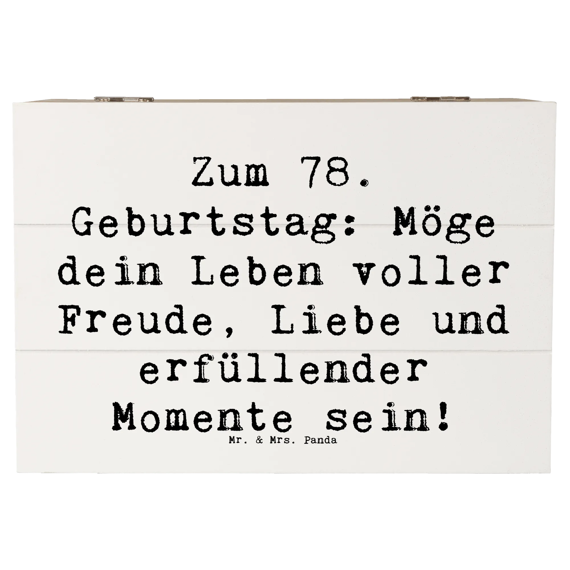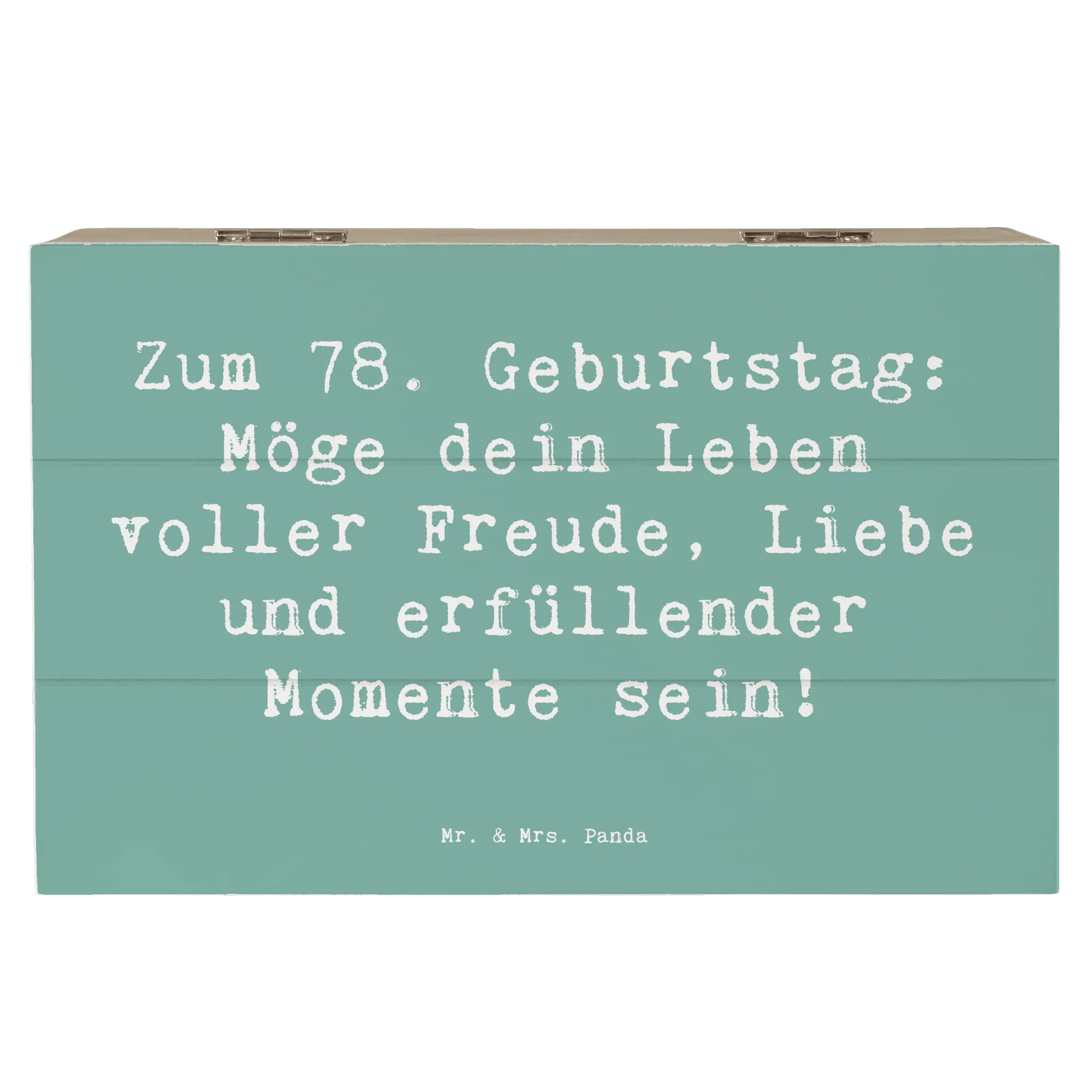 Die wunderschöne Holzkiste von Mr. & Mrs. Panda ist das perfekte Geschenk für den 78. Geburtstag! Mit dem liebevollen Spruch: "Zum 78. Geburtstag: Möge dein Leben voller Freude, Liebe und erfüllender Momente sein!" bringt sie Freude und Glücklichsein.