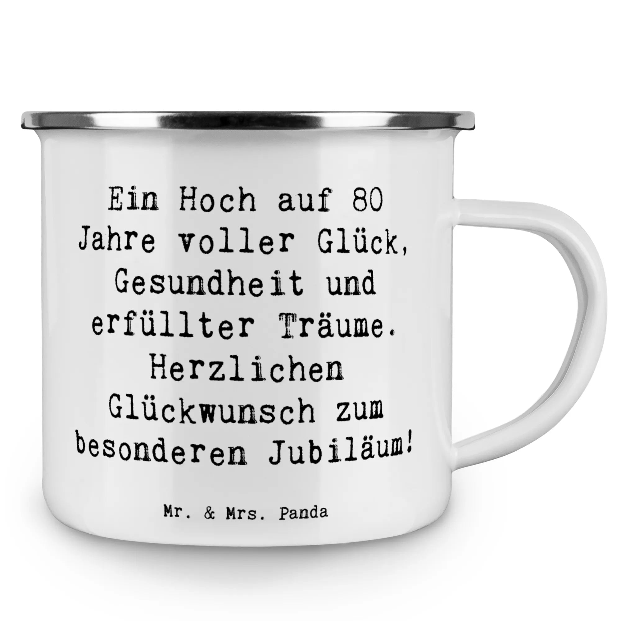 Die wundervolle Camping Emaille Tasse zum 80. Geburtstag von Mr. & Mrs. Panda ist nicht nur ein praktisches Zubehör für deinen nächsten Campingausflug, sondern auch ein ganz besonderes Geschenk für einen geliebten Menschen, der diesen besonderen Tag feiern darf.