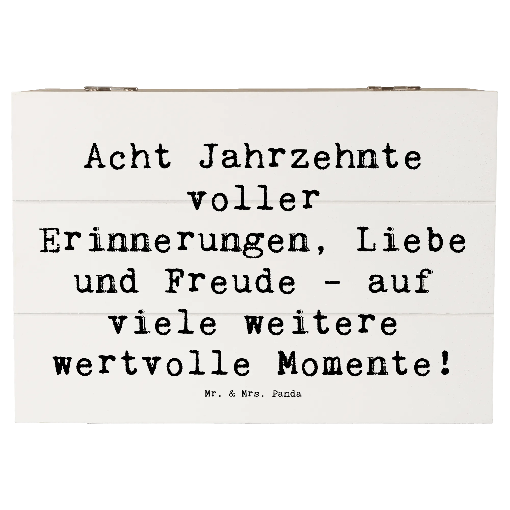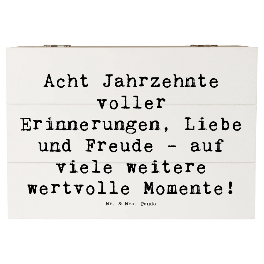 Die wunderschöne Holzkiste von Mr. & Mrs. Panda ist das perfekte Geschenk zum 80. Geburtstag! Diese zauberhafte Erinnerungskiste ist nicht nur praktisch, sondern auch ein echter Blickfang. Der spritzige Slogan "Acht Jahrzehnte voller Erinnerungen, Liebe und Freude - auf viele weitere wertvolle Momente!" versprüht Lebensfreude und ist ideal für die Feierlichkeiten eines besonderen Jubiläums.