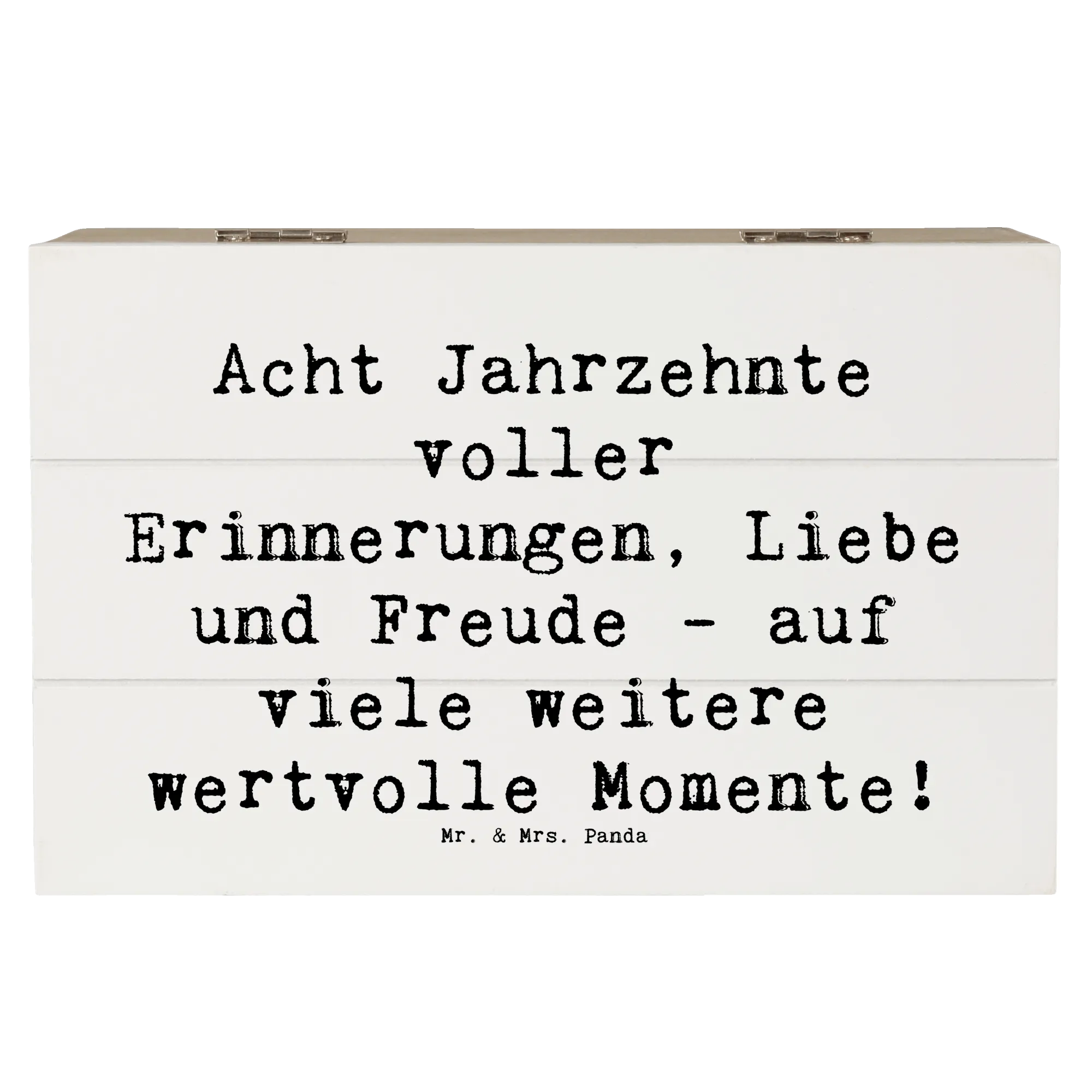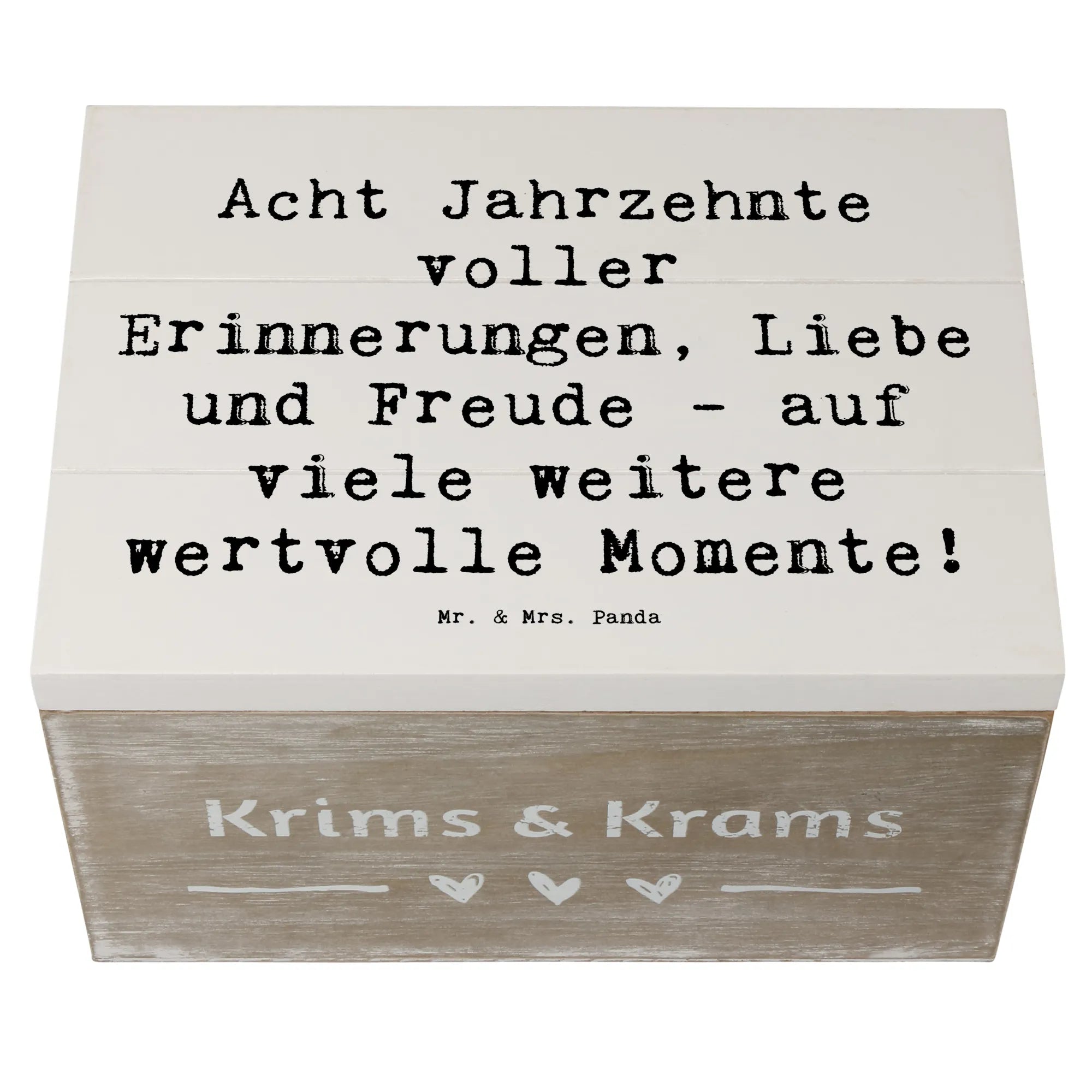 Mit ihrem zauberhaften Design und dem Spruch "Acht Jahrzehnte voller Erinnerungen, Liebe und Freude - auf viele weitere wertvolle Momente!" ist sie nicht nur eine Erinnerungskiste, sondern auch ein echtes Schmuckstück für jeden Anlass. Die Maße von 19 x 12 cm und das robuste Material aus Premium Hartfaser machen sie besonders stabil.
