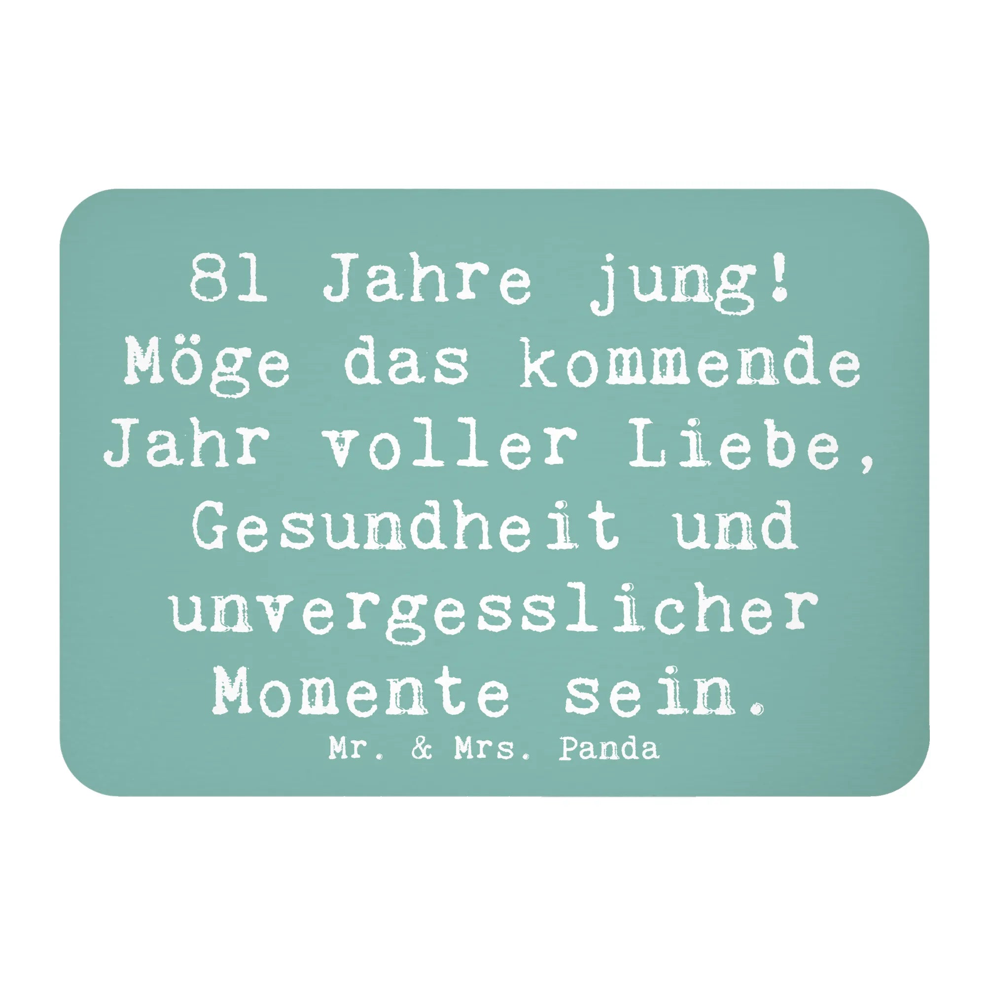 Jedes Jahr ist ein Geschenk, und mit unserem Magneten kannst du diese Botschaft auf besonders liebevolle Weise übermitteln. In unserer speziellen Kollektion "Geburtstag Alter" findest du noch viele weitere zauberhafte Geburtstagsgeschenke, die in Erinnerung bleiben. Lass dich inspirieren und schaffe wunderschöne Erinnerungen zum 81. Geburtstag – denn das Leben ist voll von unvergesslichen Momenten, die es wert sind, gefeiert zu werden. Mach den besonderen Tag deines Freundes unvergesslich mit unserem liebevollen Kühlschrankmagneten von Mr. & Mrs. Panda!