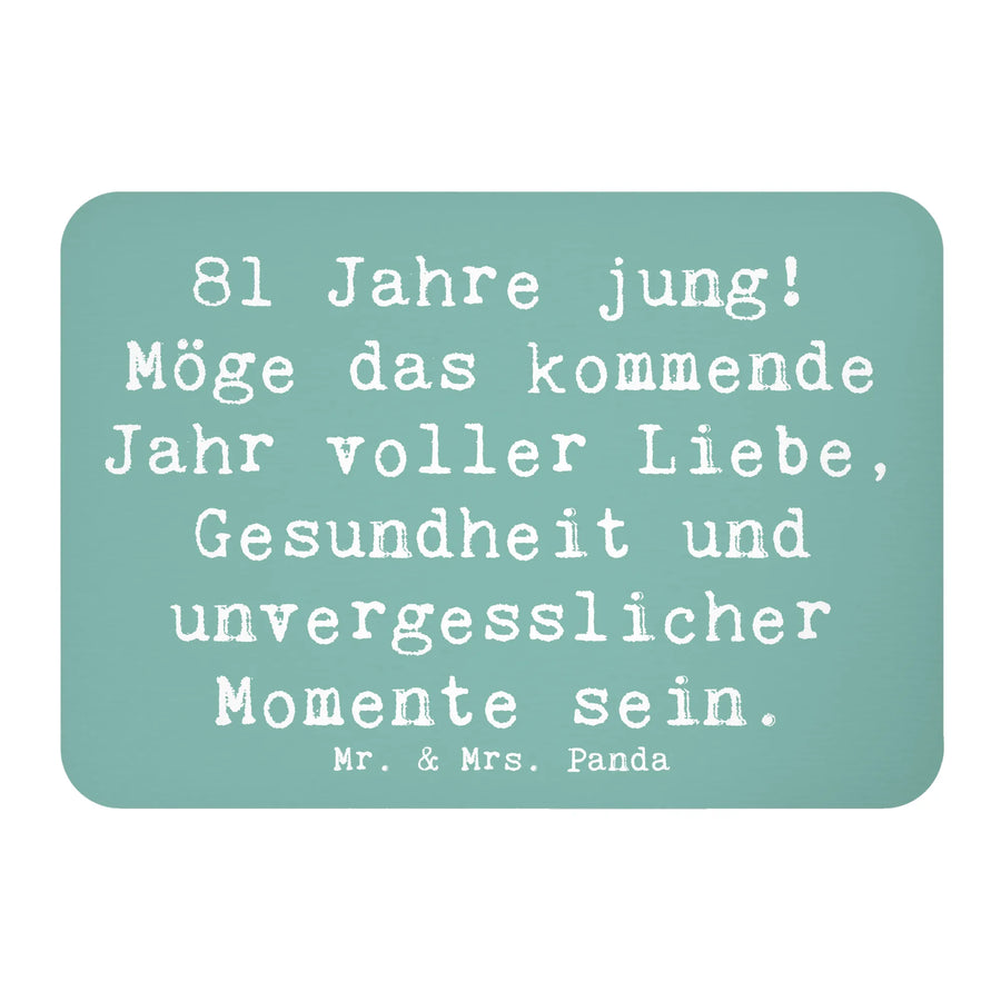 Der perfekte Kühlschrankmagnet zum 81. Geburtstag ist da! Mit dem liebevollen Spruch "81 Jahre jung! Möge das kommende Jahr voller Liebe, Gesundheit und unvergesslicher Momente sein." ist dieser Magnet von Mr. & Mrs. Panda nicht nur ein praktischer Begleiter, sondern auch ein wundervolles Geburtstagsgeschenk. Egal ob für die eigene Kühlschrankdekoration oder als originelles Souvenir für Freunde und Familie – dieser Motivmagnet begeistert überall.