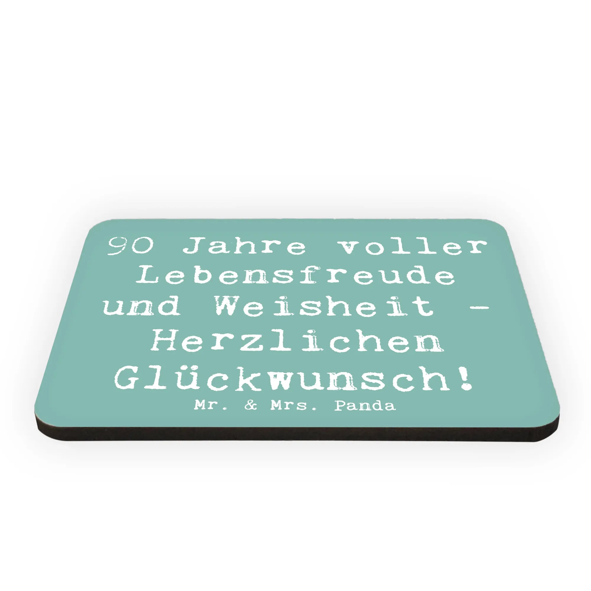 Du feierst bald einen runden Geburtstag oder suchst nach dem perfekten Geschenk zum 90. Geburtstag? Dann ist der Kühlschrankmagnet von Mr. & Mrs. Panda genau das Richtige für dich! Dieser liebevoll gestaltete Magnet, mit dem spritzigen Spruch „90 Jahre voller Lebensfreude und Weisheit - Herzlichen Glückwunsch!“, eignet sich hervorragend als Glückwunsch und als zauberhafte Erinnerung an diesen besonderen Tag.